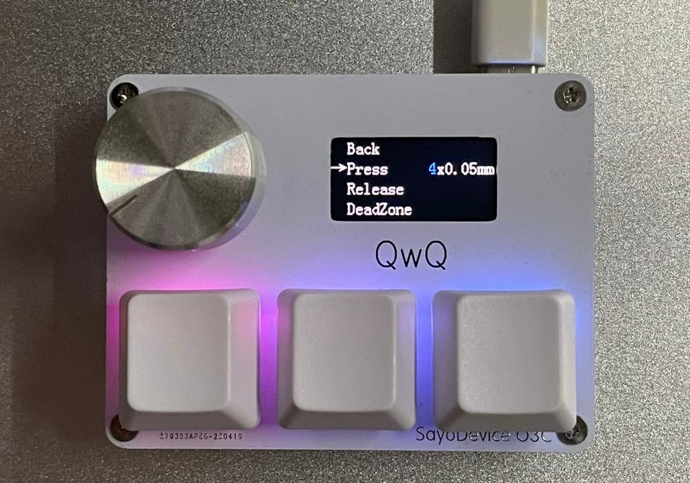 To double click of the keys, break touch or change switches, please follow the steps below to calibrate. Press and hold the knob to open the menu. Users can calibrate or set keystroke triggering parameters.