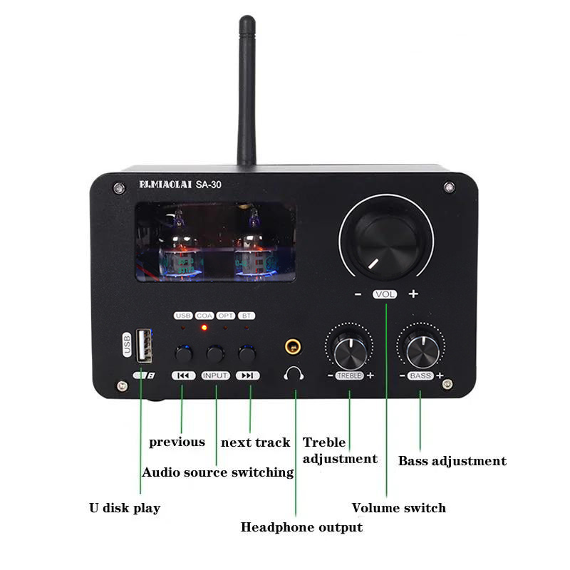 - PJ.MIAOLAI SA-30 with optical input, coaxial input, Bluetooth input, U disk playback, multi-group signal input, free switching.