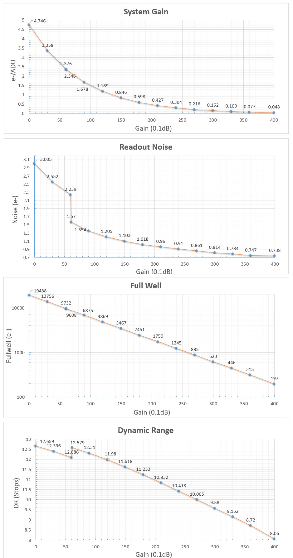 Regarding readout noise, we solemnly promise that all values are obtained from actual tests. You can use the software for Sharpcap 4 for testing. SC4 has a function called Sensor Analysis, providing a very simple way to test readout noise.