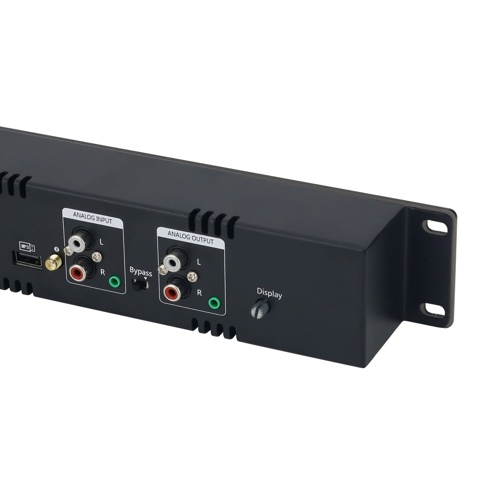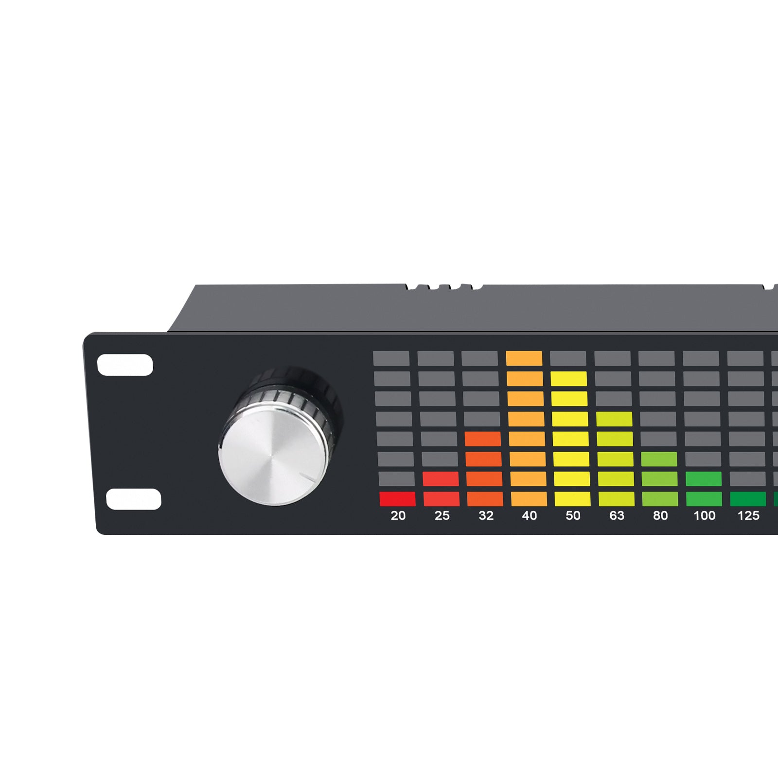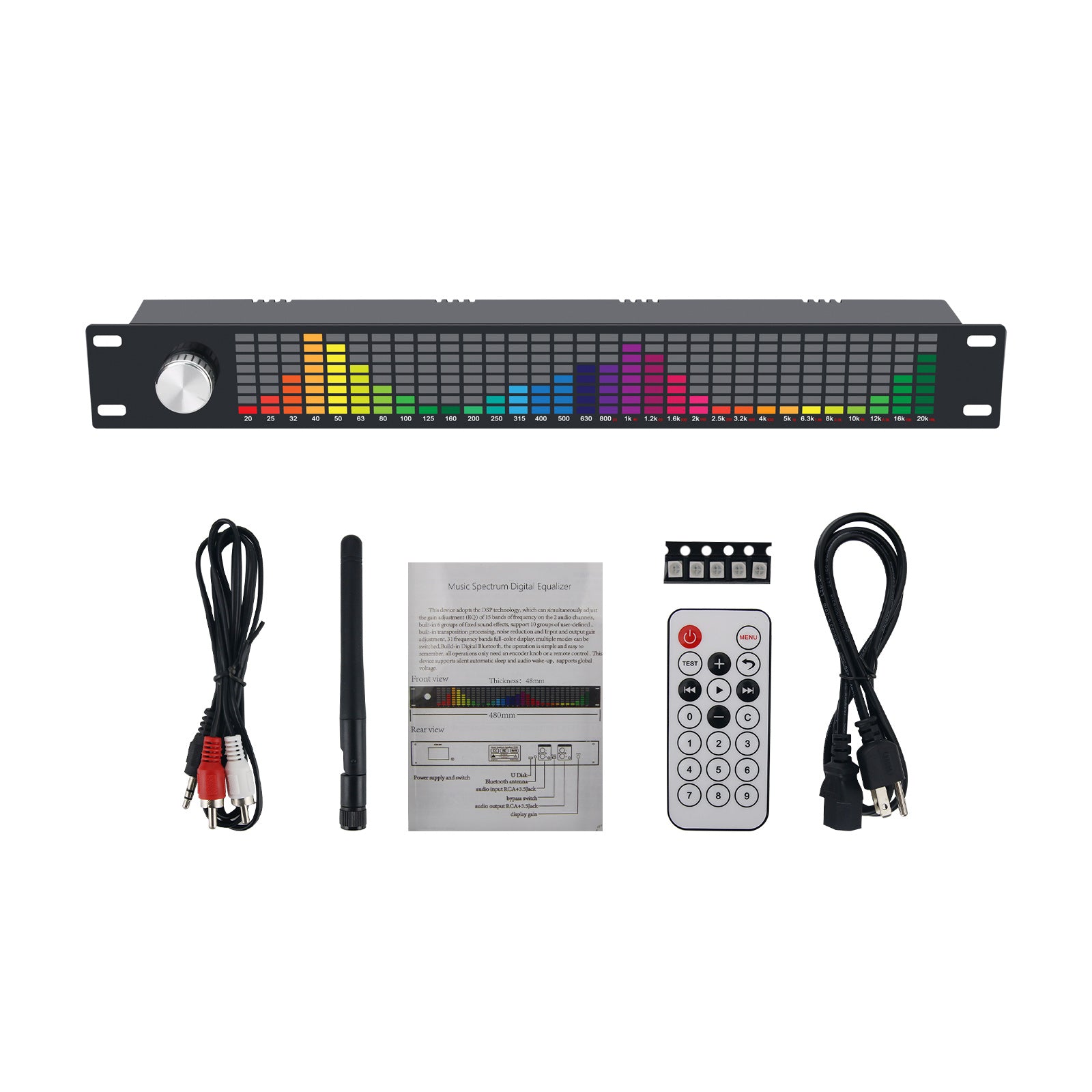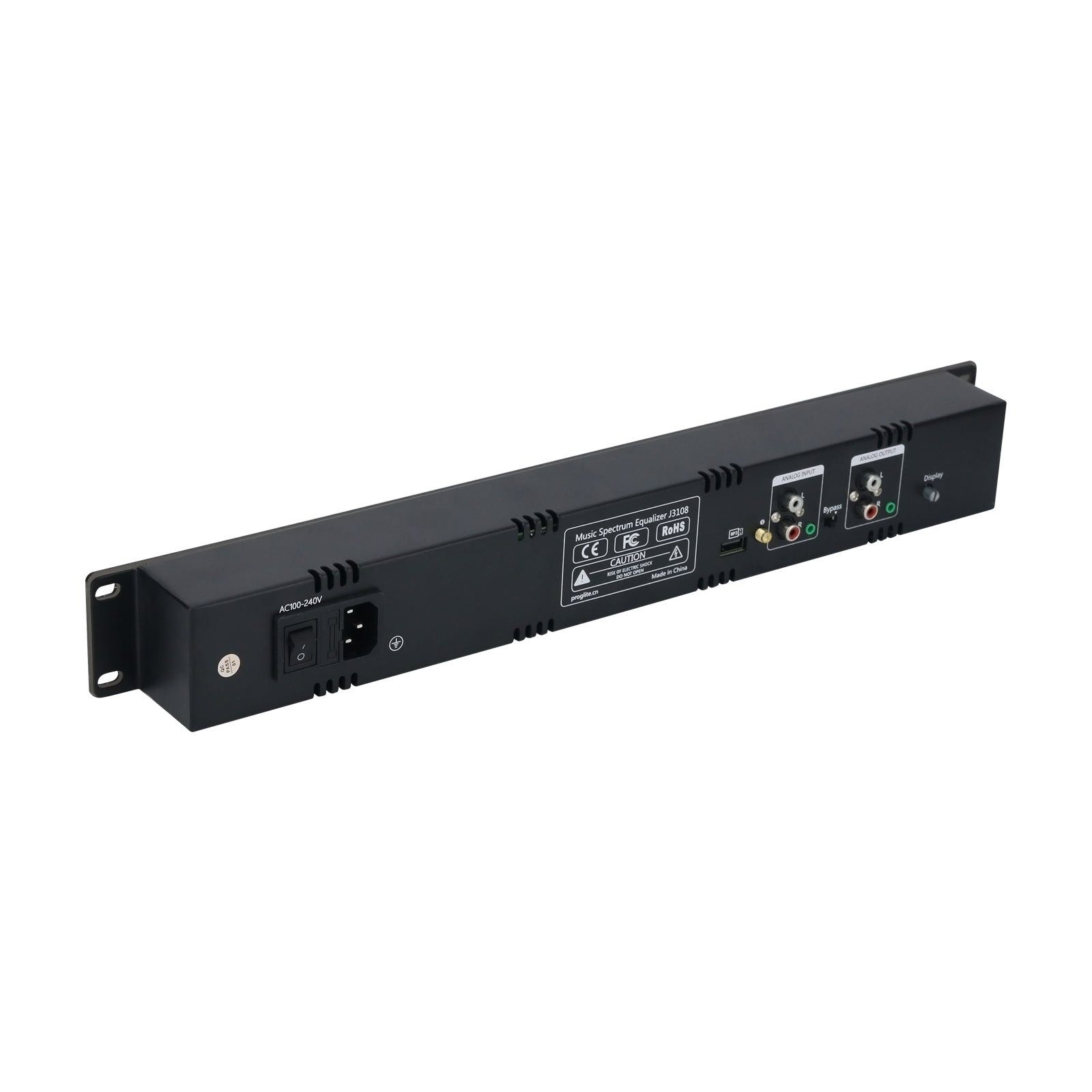 - This device adopts a new type of DSP digital processing technology, which can simultaneously adjust the gain (EQ) of 15 frequency bands on two audio channels. It has 6 built-in fixed sound effects and supports 10 user-defined sound effects. It also has built-in modulation processing, noise reduction processing, and gain adjustment for input and output. The display part supports AGC control, and 31 frequency bands are displayed in full color. Multiple modes can be switched, making the operation simple and easy to remember. All operations require only one encoder knob or one remote control, and the operation takes effect in real time with automatic memory. This device supports silent automatic sleep and audio wake-up, with a built-in pickup display and global voltage support, making it very suitable for use in commercial and professional settings.