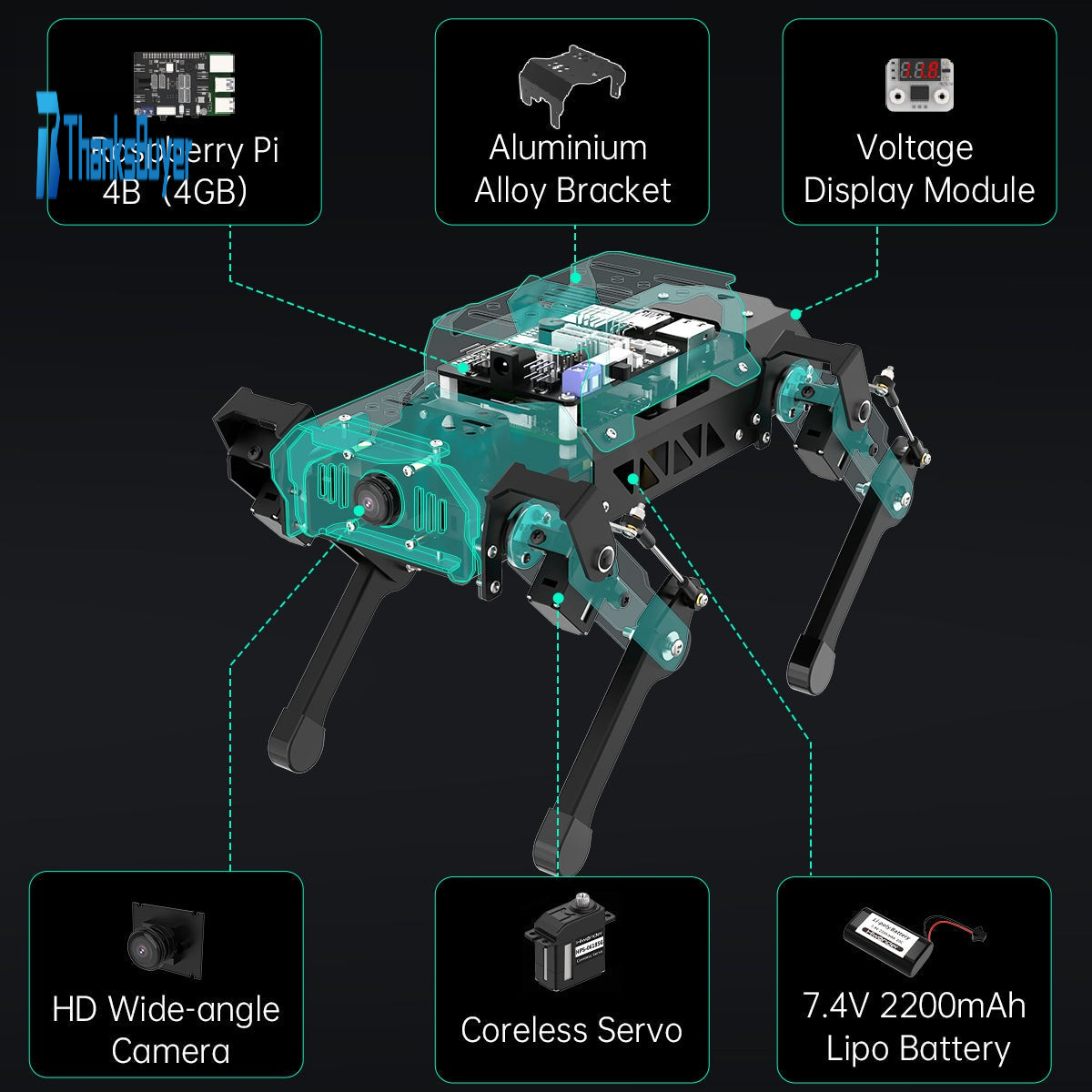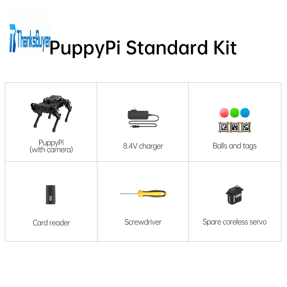 - Made of aluminium alloy and equipped with metal bearings on joints, PuppyPi features light weight and high strength. Compact and flexible body lets it show talents even on the desk.