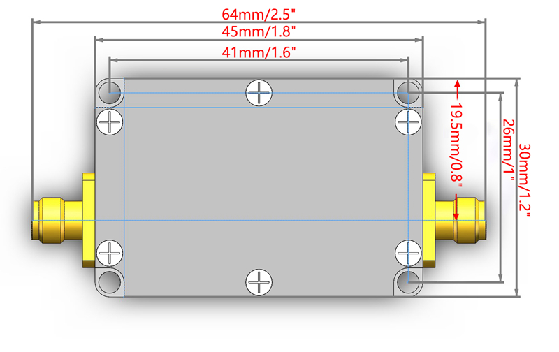 4. Size: 4.5 x 3 x 1.4cm/1.8 x 1.2 x 0.6" (excluding the size of SMA connectors). Net weight: 66G/0.1LB (including amplifier and type-c cable)