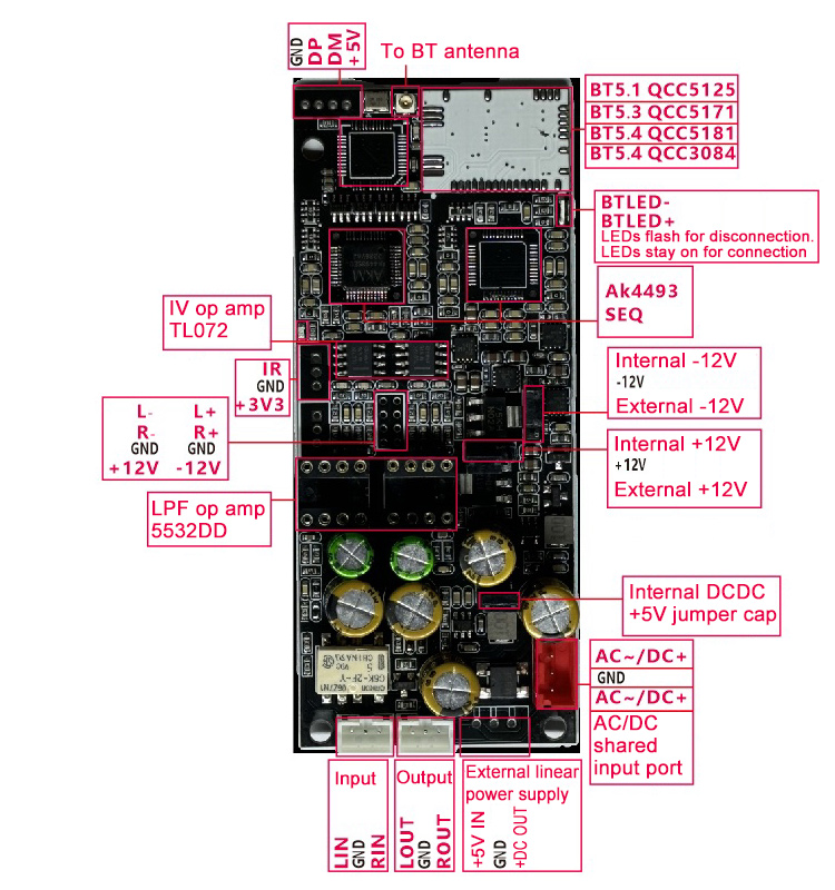 QCC5181 BT5.4 Bluetooth Receiver Module with Dual Parallel AK4493SEQ Supports Lossless Music