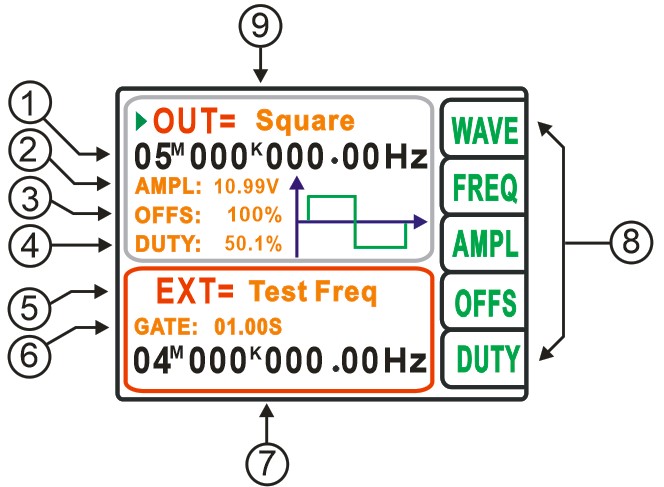 - Waveform Types: Sine wave, square wave, triangle wave, sawtooth wave