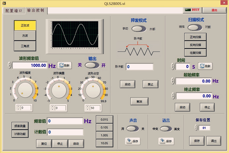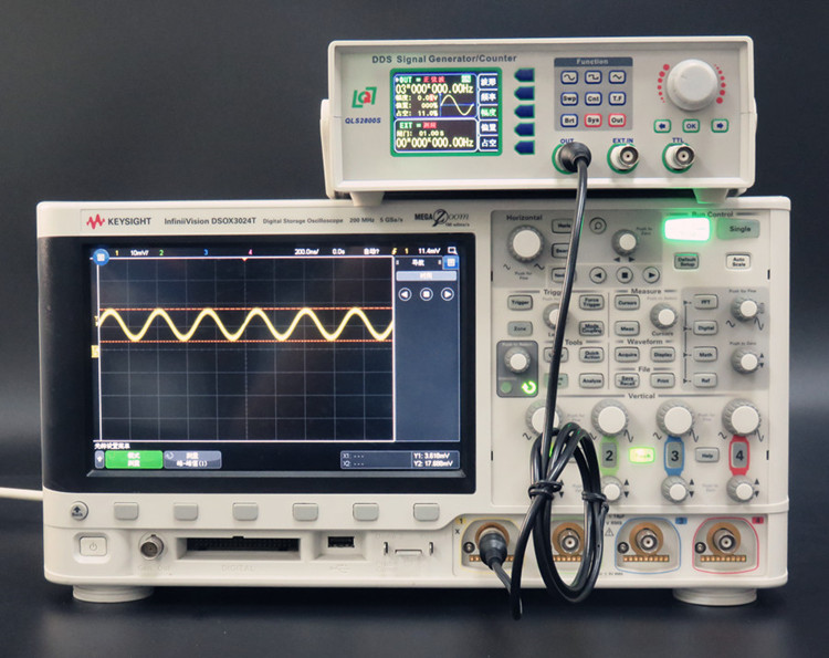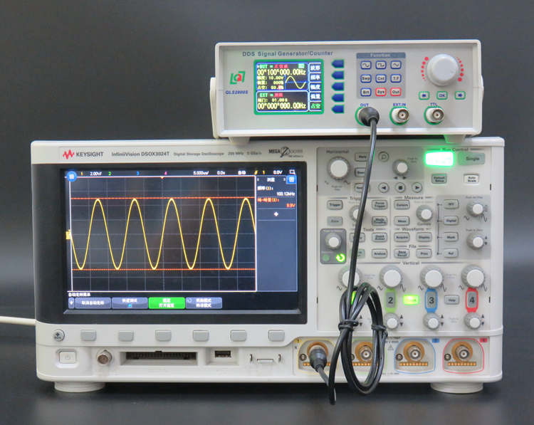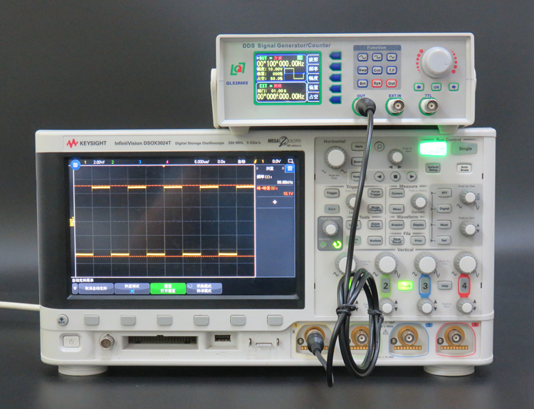 (1)Wave output function: output frequency 100K, peak-to-peak value 10V, sine wave signal with zero offset.
