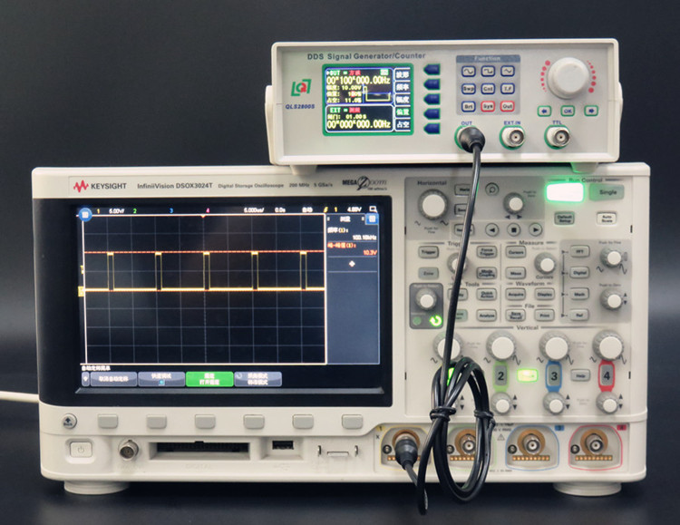 (2)Wave output function: square wave signal with output frequency 100K, peak-to-peak value 10V, and offset to zero.