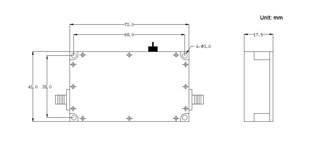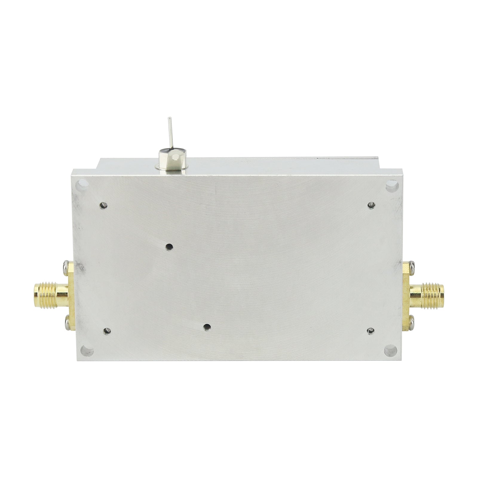 The power amplifier module is used as a 1MHz-1200MHz transmitter RF signal power pusher, covering typical frequencies such as FM, VHF, UHF, etc. The module is packaged in CNC shell, with excellent electromagnetic shielding and heat dissipation performance. It can be used for wide-band power amplification, has a typical gain characteristic of 35dB, and is powered by a +12V power supply. It is widely used in power signal output requirements in 1-1200M transmission systems.