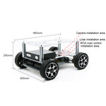 * Mounting areas for ROS main controller, depth camera, and lidar are reserved, but these components are not included.