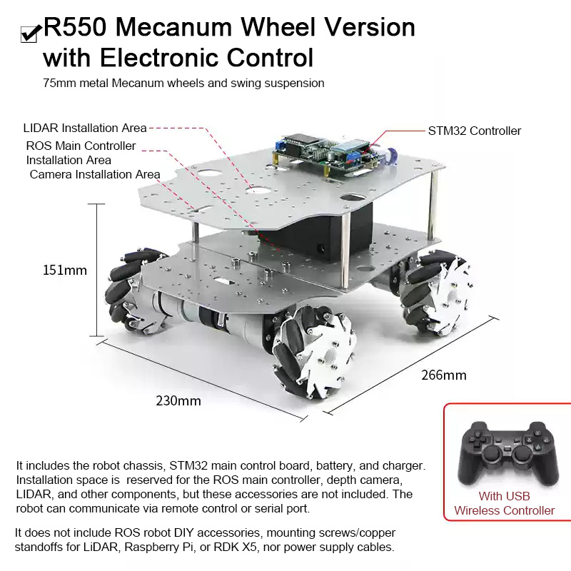 R550 Robot Chassis Robot Car Chassis (Mecanum Wheel Version w/ Electronic Control Swing Suspension)
