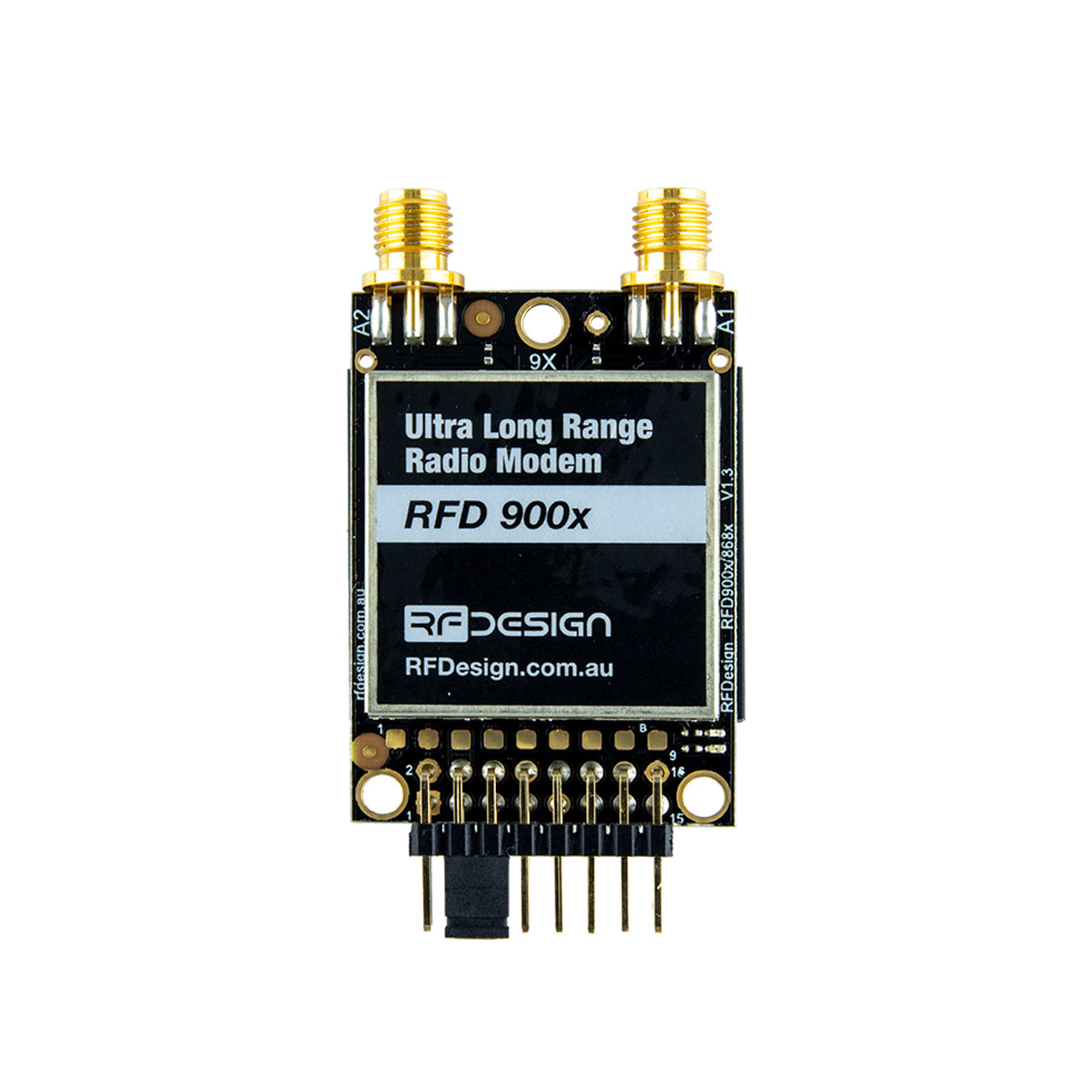 The RFD900x is a high performance 900MHz, ISM band radio modem covering the 902 – 928 MHz frequency band. It is designed for long range serial communications applications requiring best in class radio link performance.