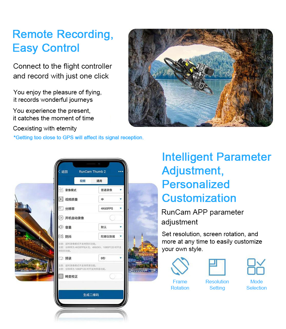 RunCam Thumb 2 Lightweight HD Camera with 128G SD Card 4K 60fps/2.7K 60fps Built-in Gyroscope for FPV Racing Drones