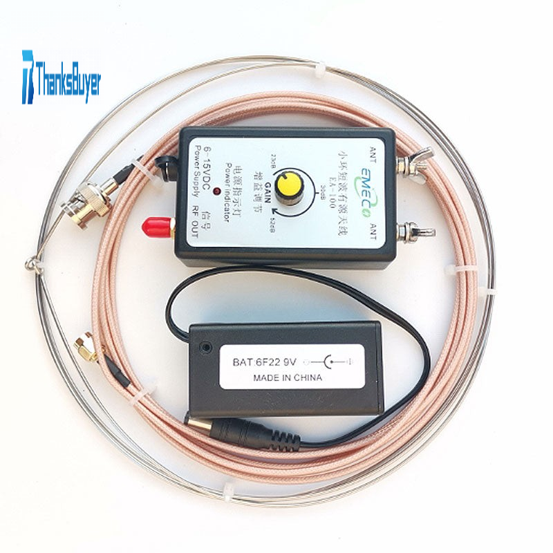 - Install the battery and SMA feeder, round the antenna ring with 2mm diameter and 60cm ring, and fix it in the twist angle screw, and insert the other end of the antenna into the external antenna port of the radio or the antenna input port of the SDR receiver.