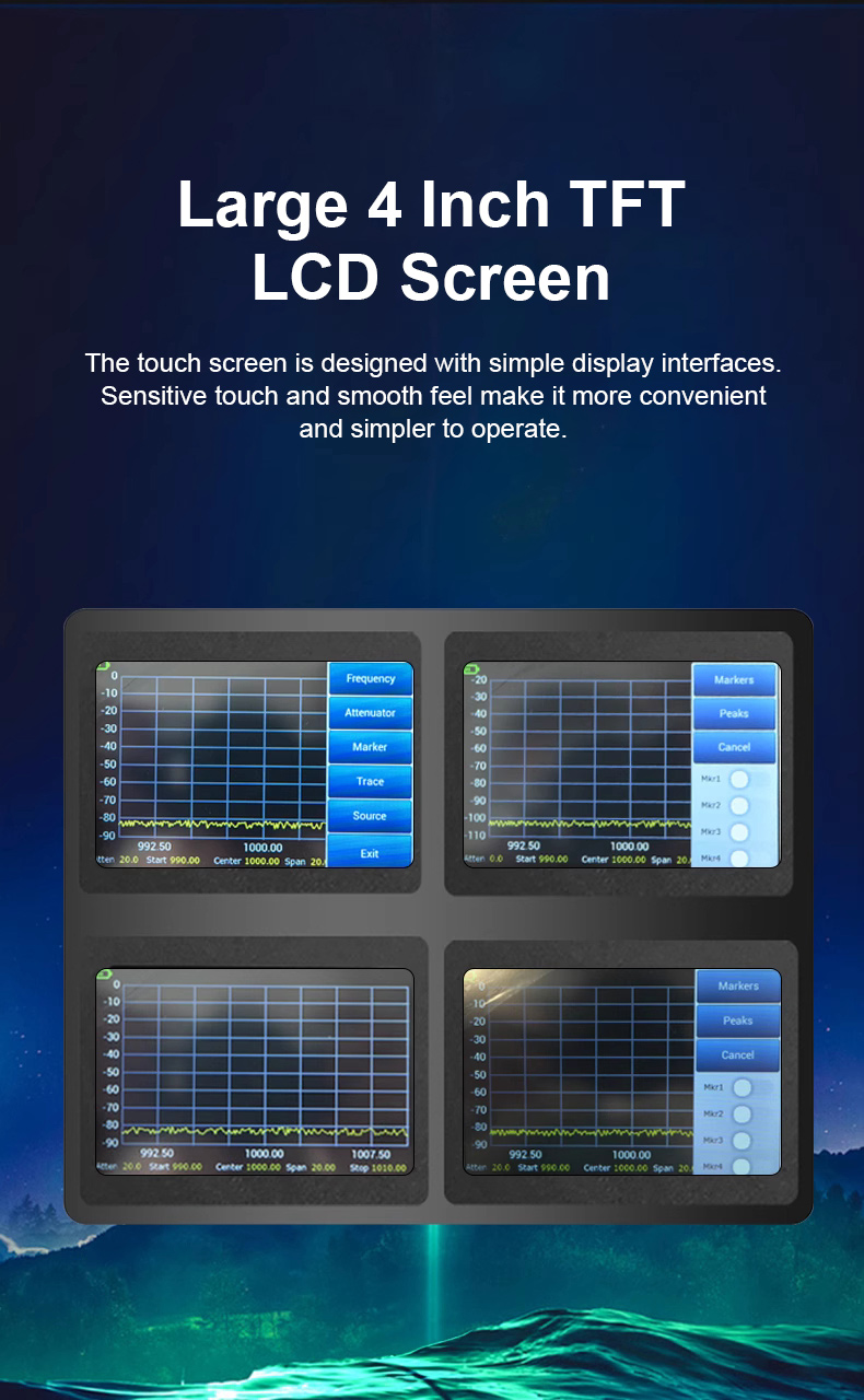 - Frequency range: 30MHz-60000MHz; frequency accuracy: 0.01MHz