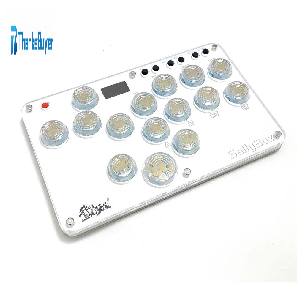 Sallybox Plus 15-Button Arcade Controller Mini Fight Stick with White Keycaps and Layout for Hitbox