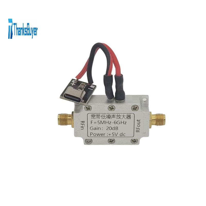 - The amplifier operates in a frequency range of 5-6000MHz and has a power gain of 20dB. It has the advantages of wide frequency range, stable gain, low noise figure, and large dynamic range, making it suitable for fixed gain amplification of various RF signals.