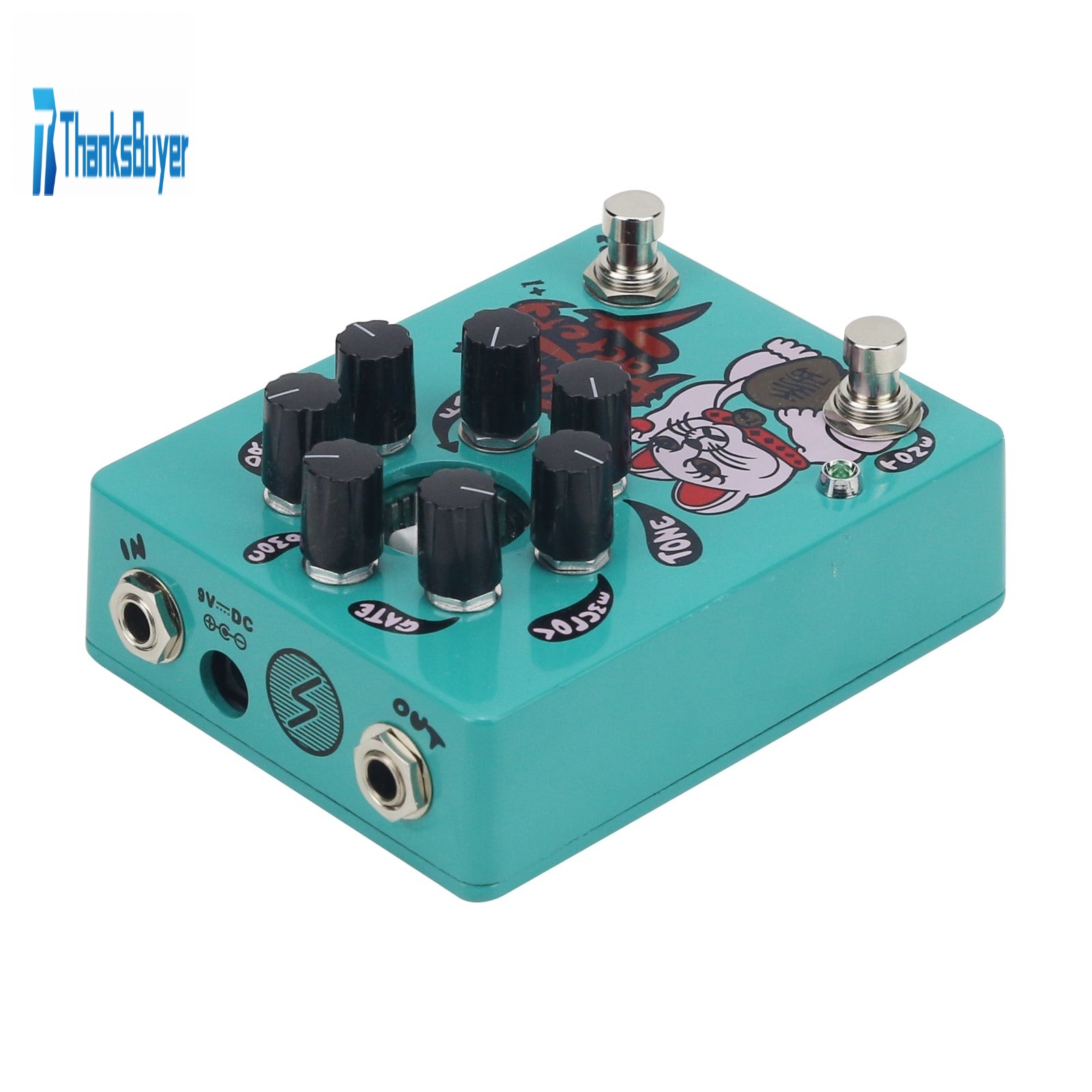 COMP (compression): Turning to the left increases the intensity of the punch, turning it to the right makes the punch softer, and turning it to the right narrows the dynamic range of the sound. It can also be used in combination with the gate knob, turning the gate high and then turning the compressor low enough to get a squished sound, like a broken pedal or amp. .
