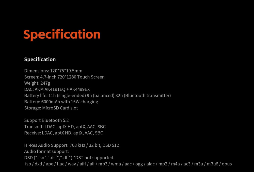 SHANLING Silvery M5 Ultra 10th Anniversary Version Bluetooth5.2 HiFi Music Player AK4191+AK4499EX High Performance DAC