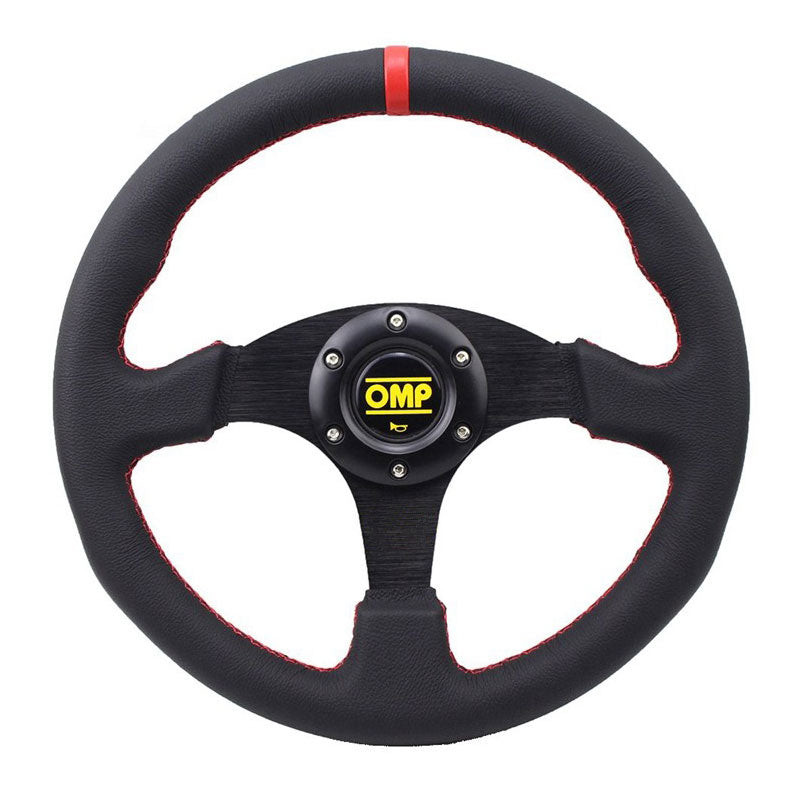 Simplayer 13 Inch Steering Wheel Universal Racing Wheel (Leather + Red Stripe) for OMP Modification