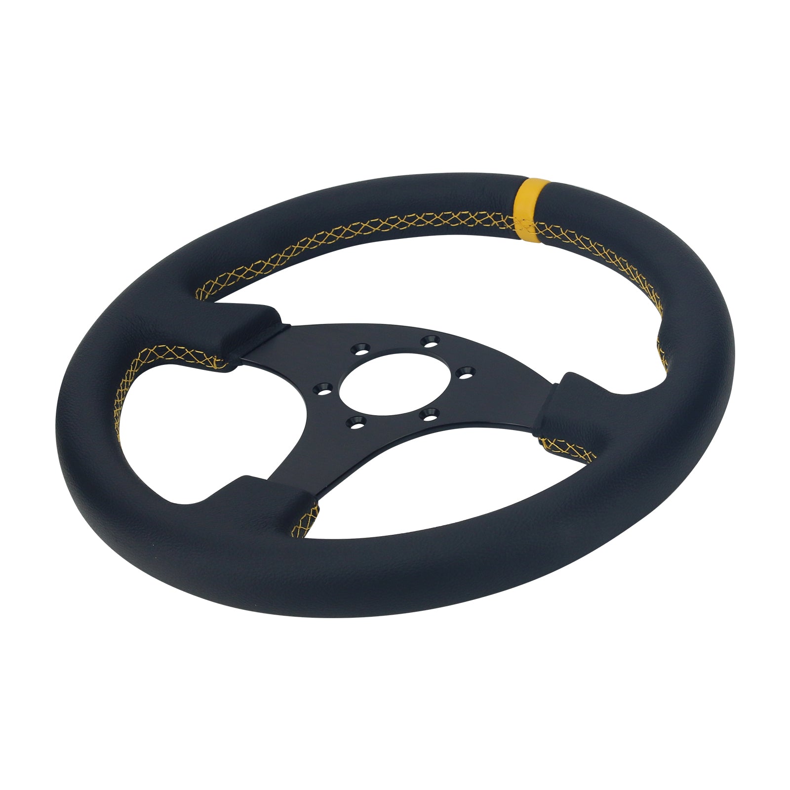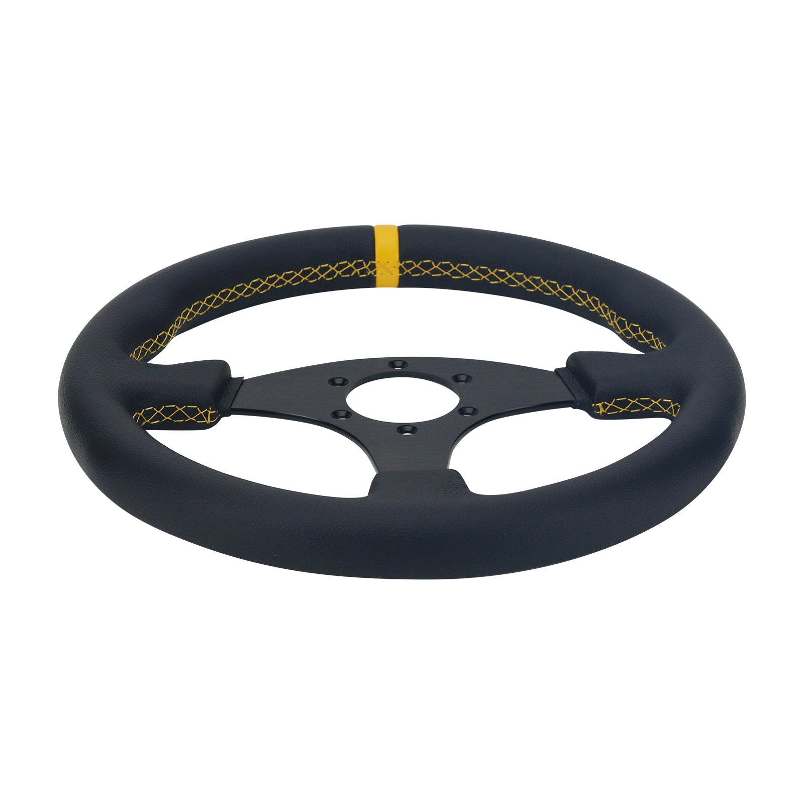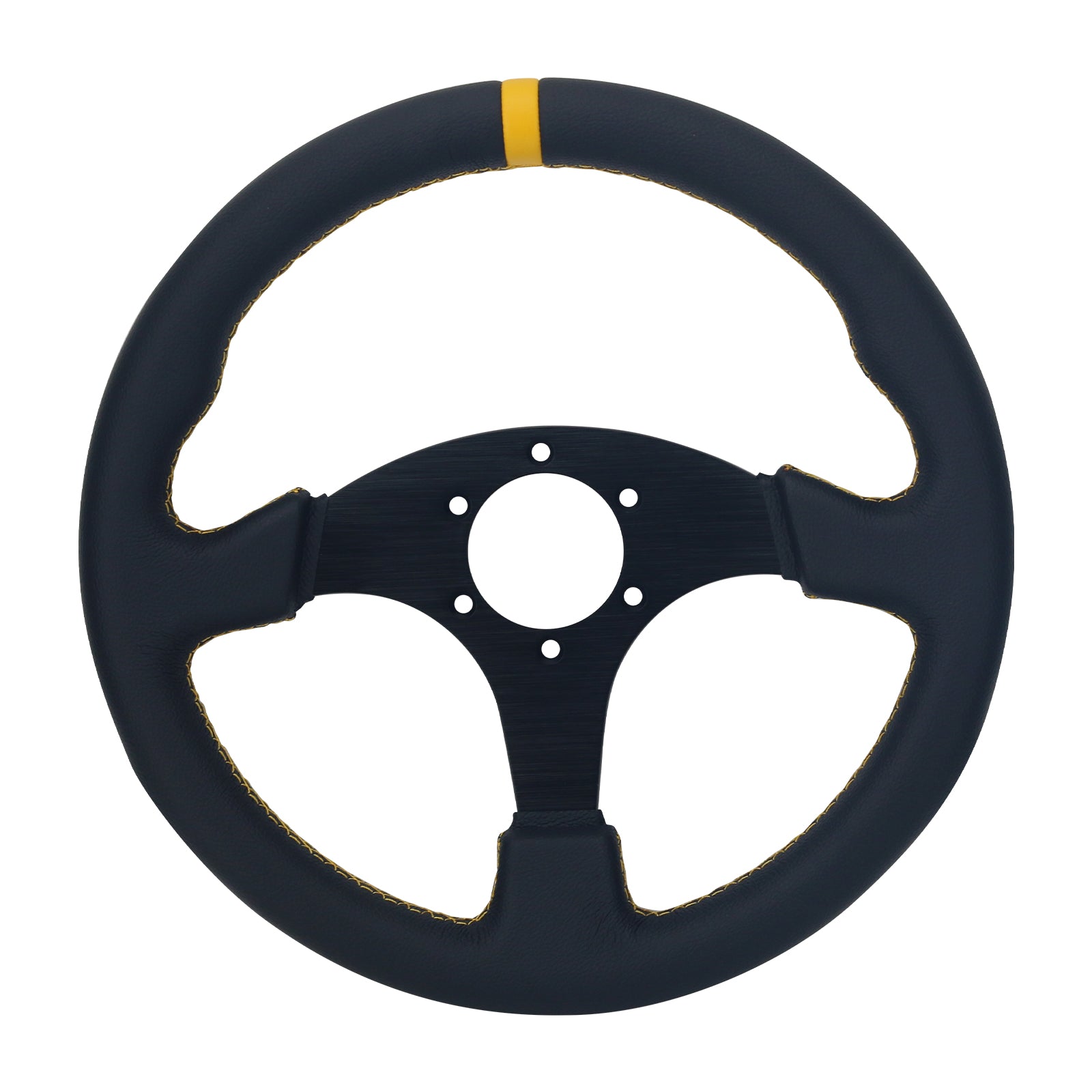 Simplayer 13 Inch Steering Wheel Universal Racing Wheel Leather + Yellow Stripe for OMP Modification