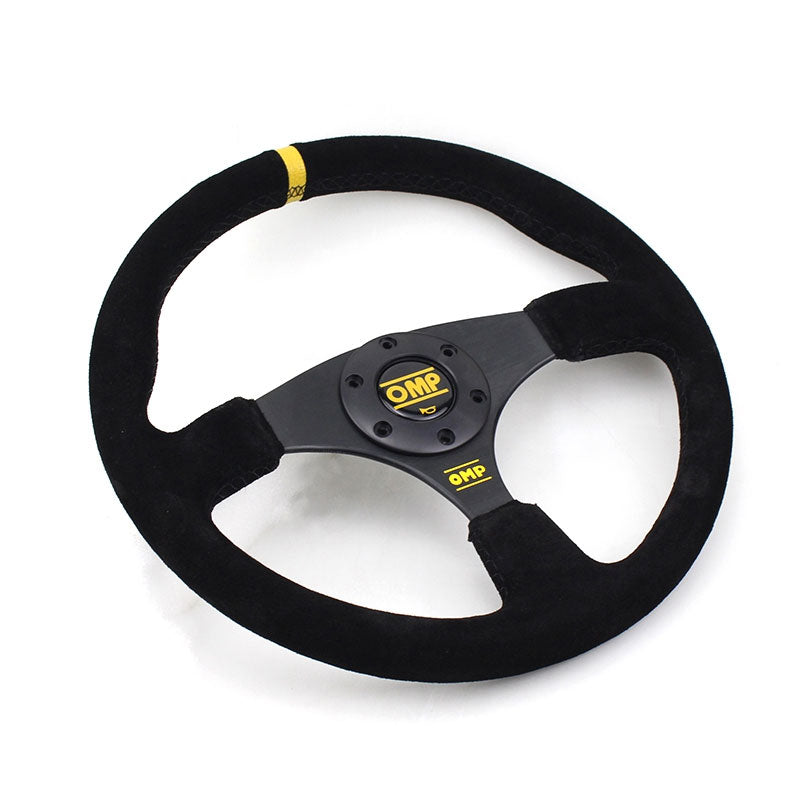 Simplayer 14" Universal Steering Wheel Racing Wheel Matte Suede + Yellow Stripe for OMP Modification