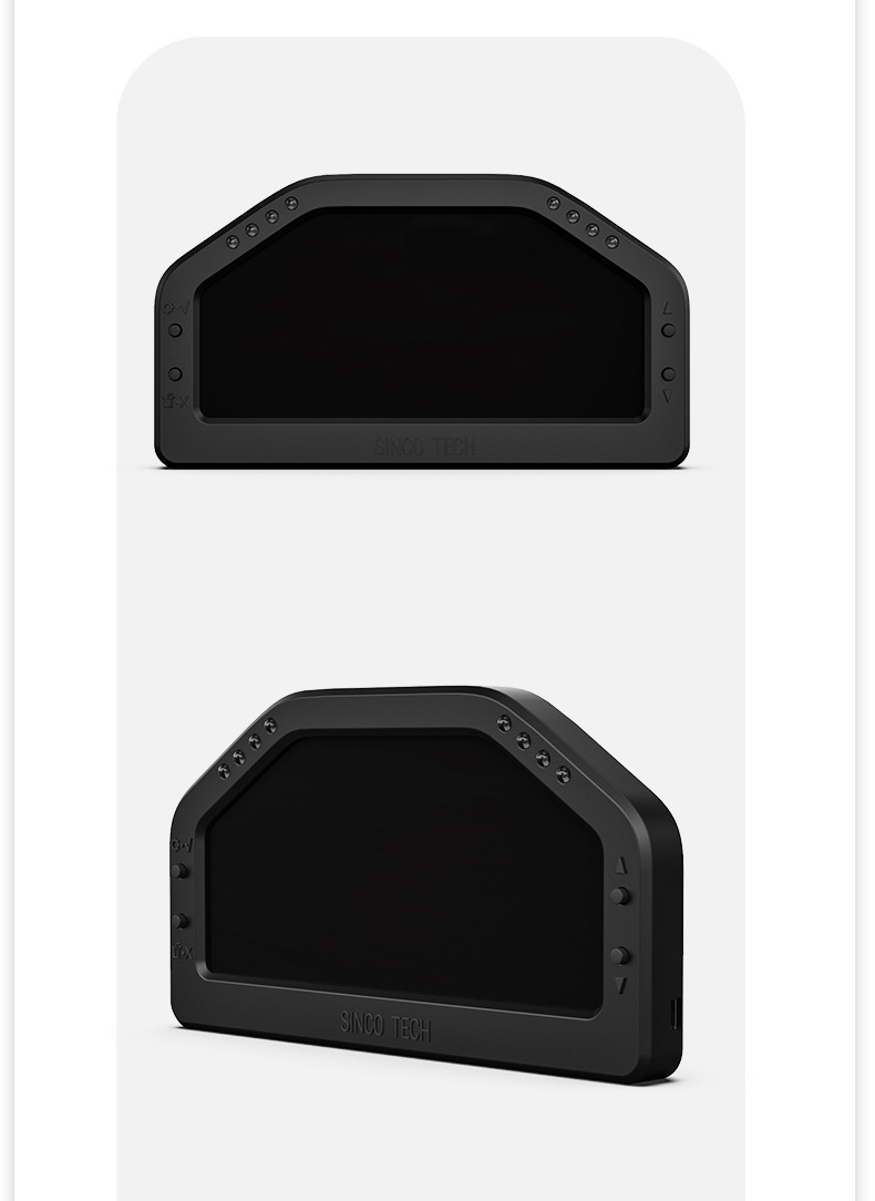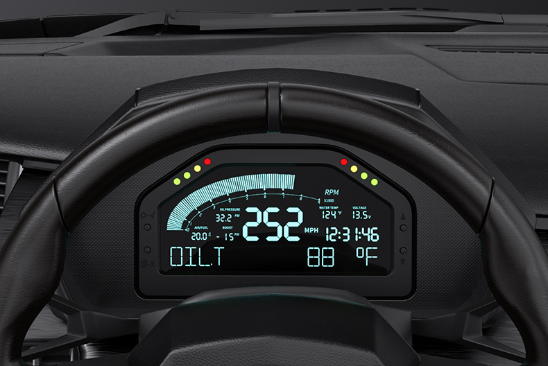 - Multifunctional display area at the bottom: voltage display, exhaust gas temperature display, air-fuel ratio display, oil temperature display, water temperature display, oil pressure display, booster display
