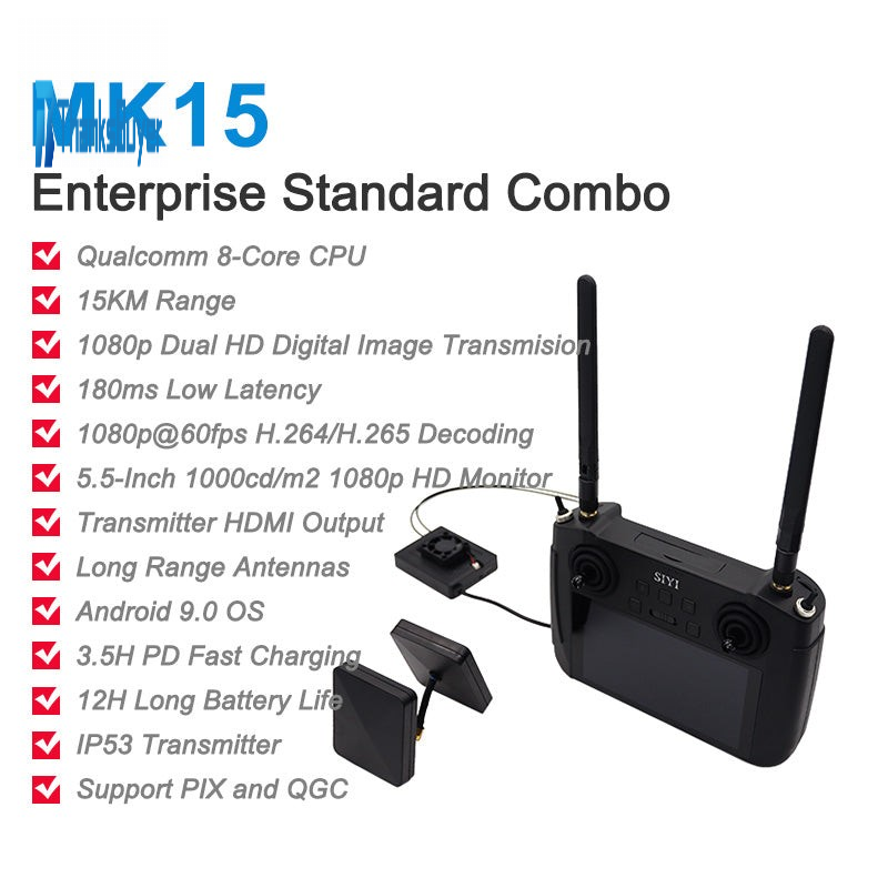 SIYI MK15 Enterprise Standard Combo 15KM RC Transmitter Receiver Image 1080P Transmission System