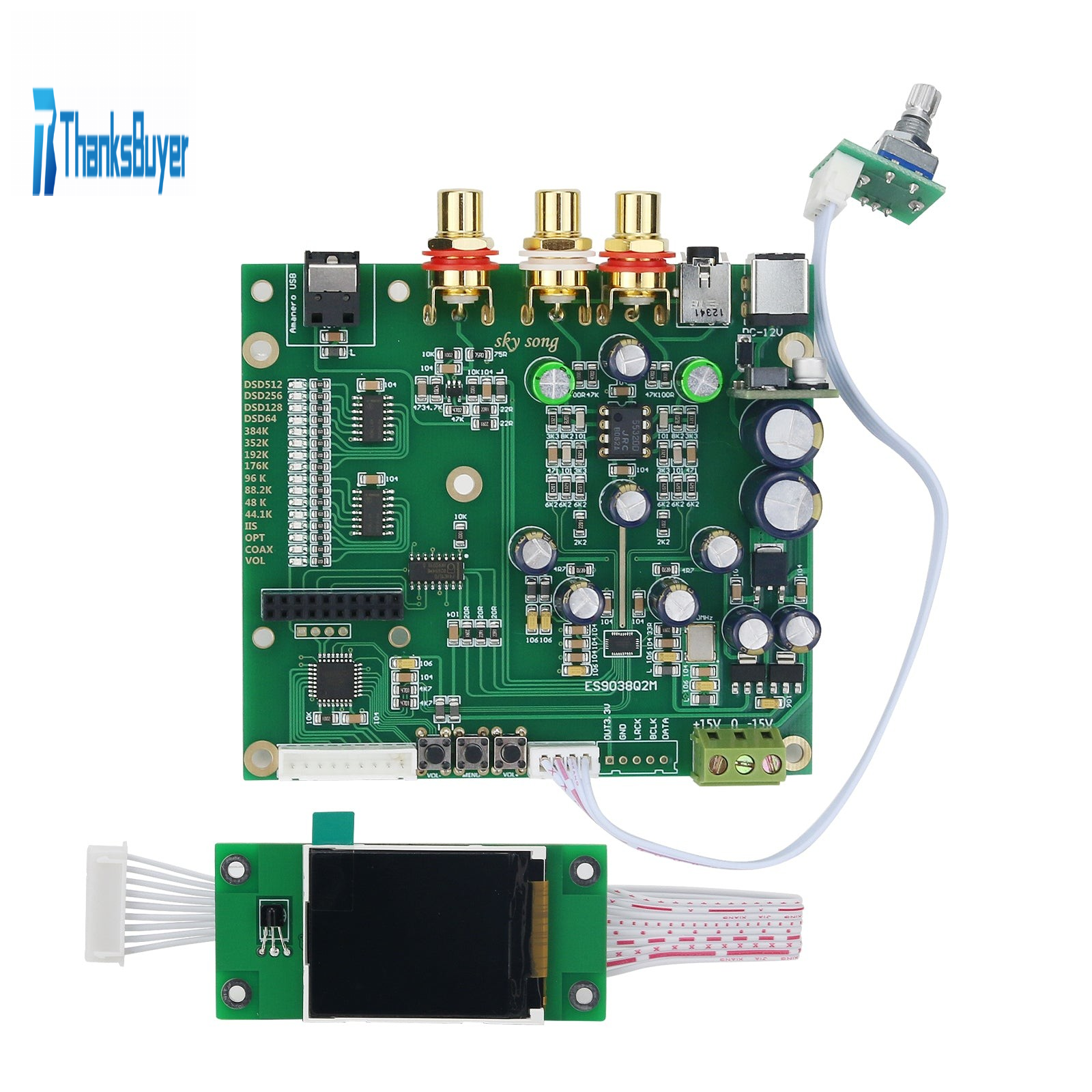 Sky Song ES9038Q2M DAC Board Decoder Board with Gold-plated RCA without USB Interface