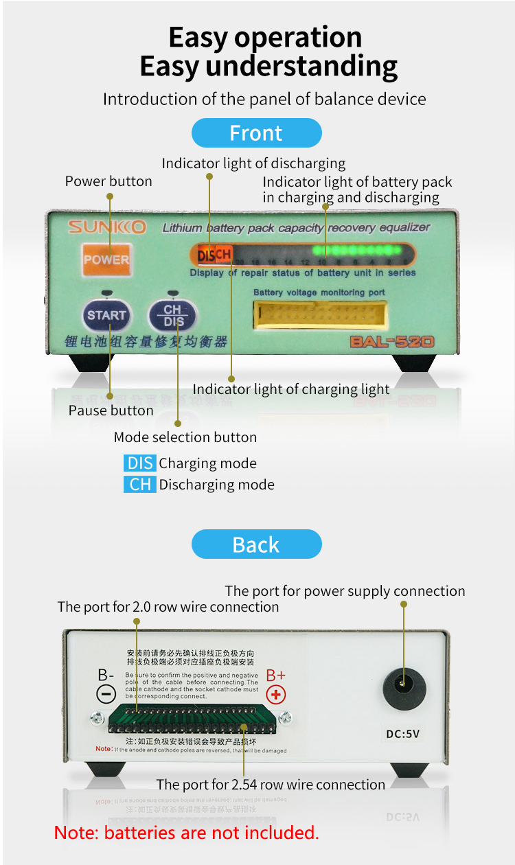SUNKKO BAL-520 Battery Equalizer Battery Balancer for Ternary Lithium Battery Pack Capacity Repair