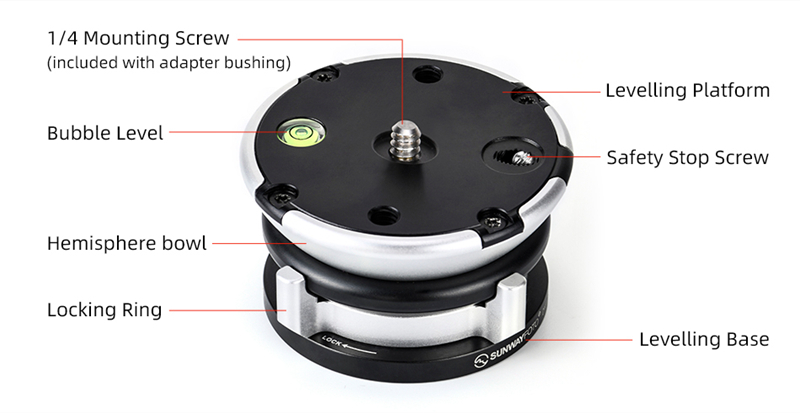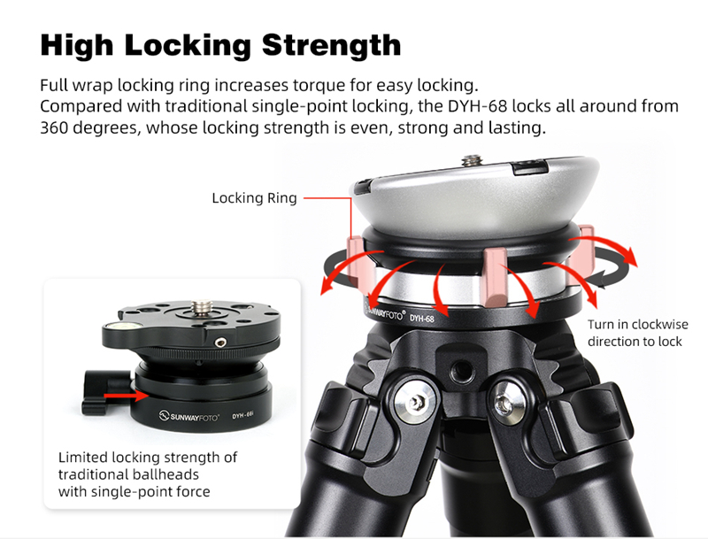 SUNWAYFOTO DYH-68 Leveling Base Leveling Head + DDY-64i Tripod Head Quick Release Clamp Discal Clamp