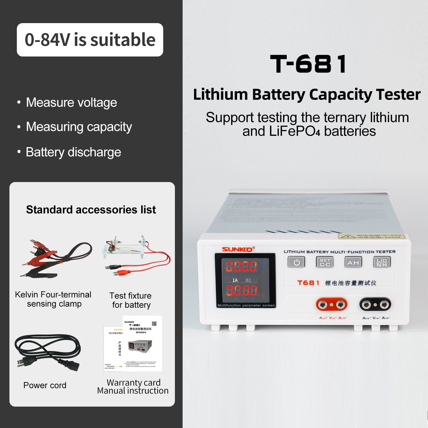 T-681 0-84V Lithium Battery Capacity Tester Multi-function Tester with High Definition Digital Display Screen