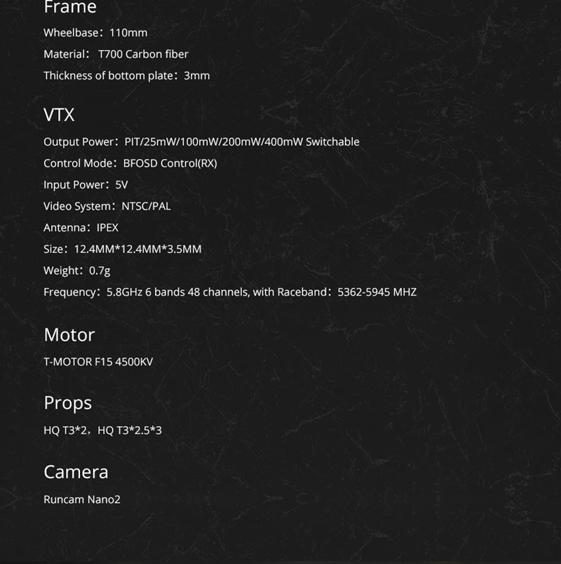 T-Motor F15 Toothpick Drone FPV Drone RC Aircraft 110MM 2-4S Quadcopter Airplane Assembled
