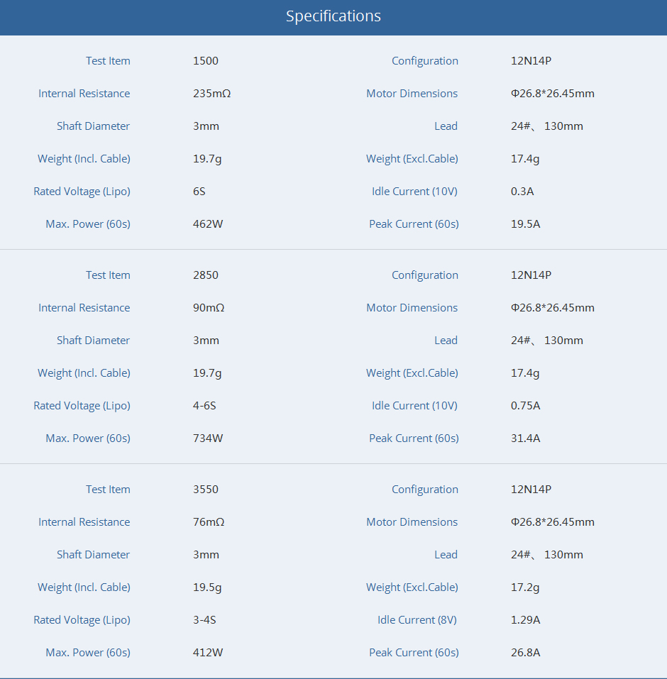 - 1 x KV1500 Motor