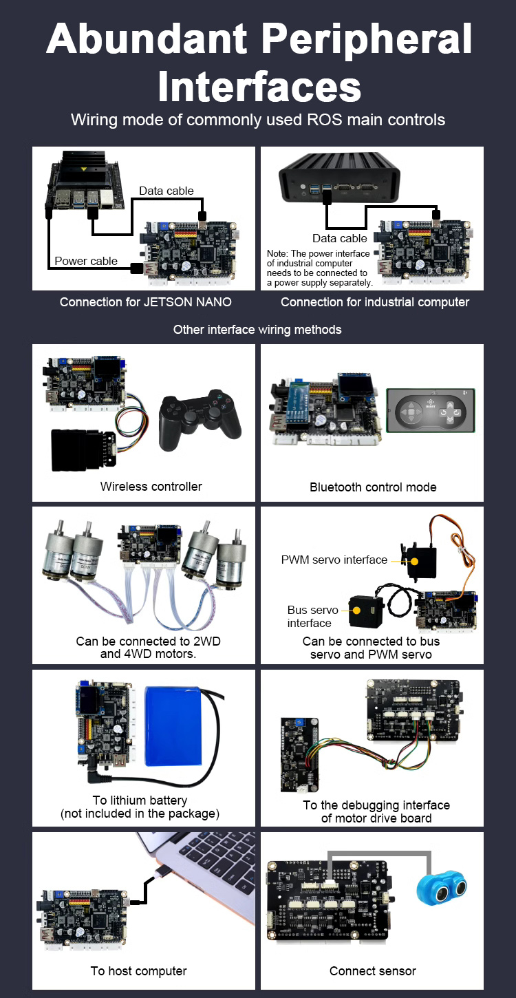 - Control mode: original wireless controller for PS2, Bluetooth mobile phone APP for Android, serial port command of host computer, etc.