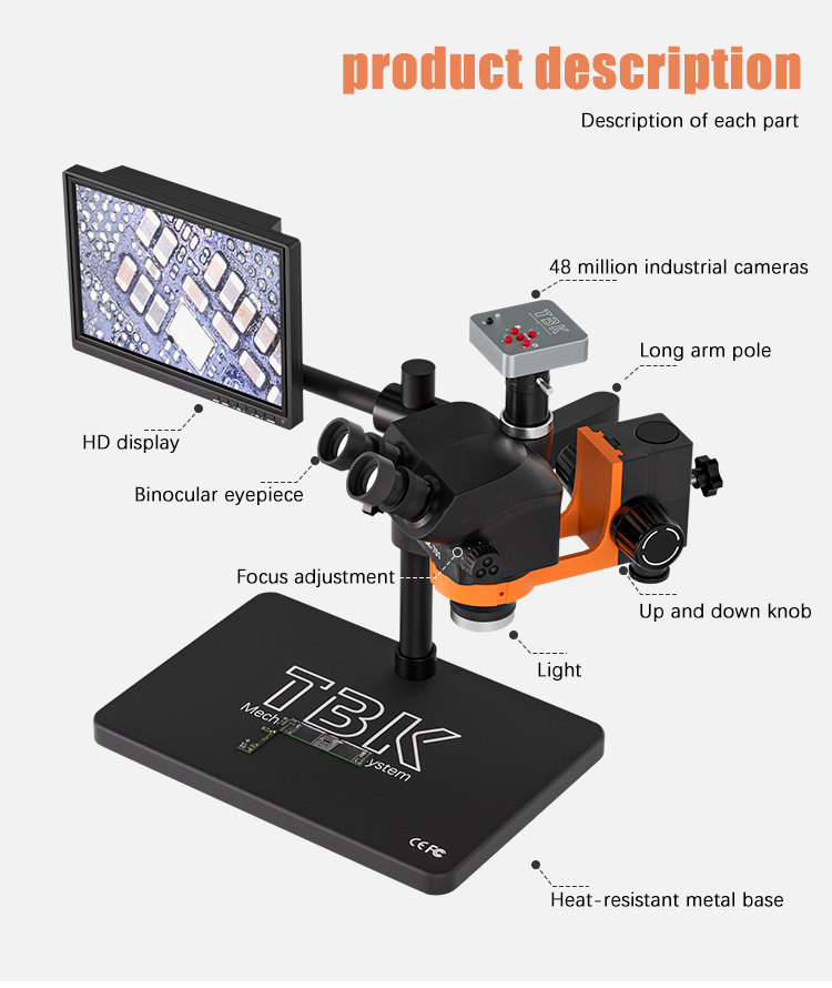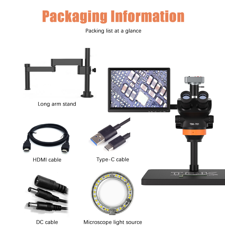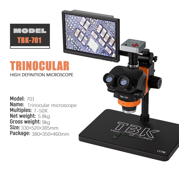 TBK-701 Trinocular HD 48 Million Pixels Electronic Microscope 7-50X for Mobile Phone Soldering and Repair