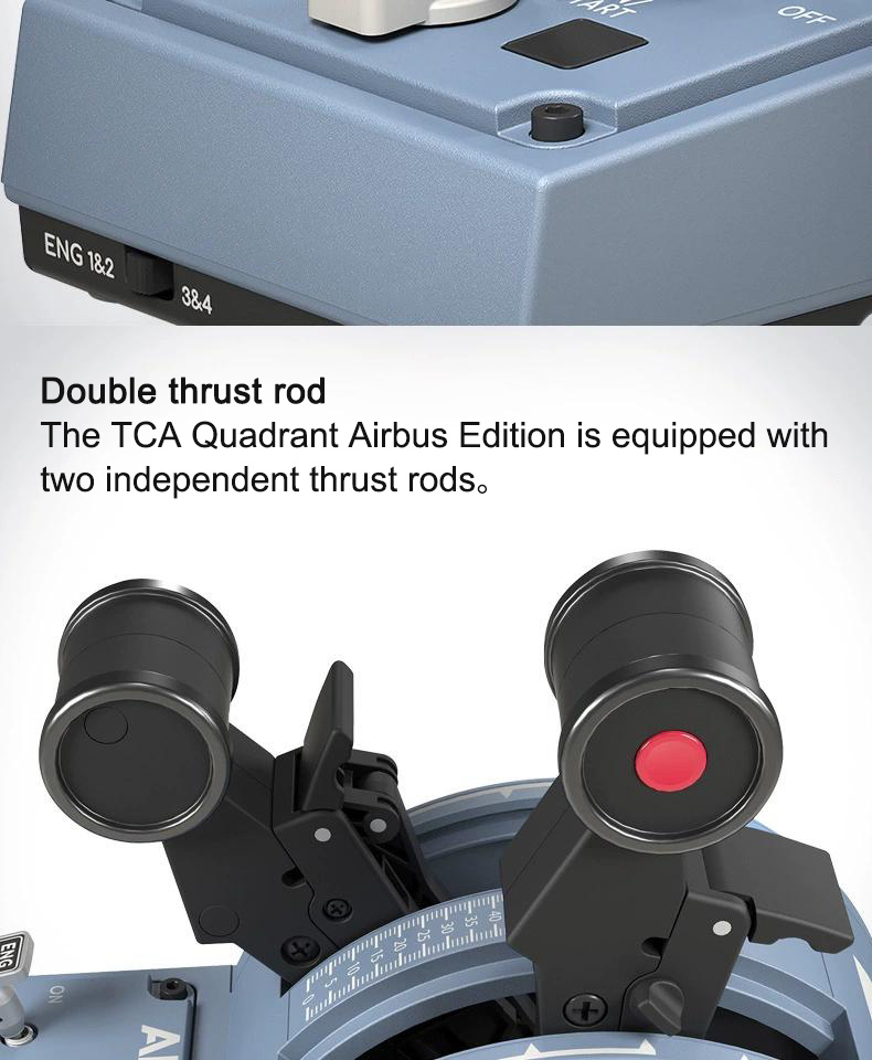 - This modularity adds new axes and action buttons, and lets you extend the kinematics (takeoff, in-flight and landing) of the TCA Quadrant Airbus Edition.