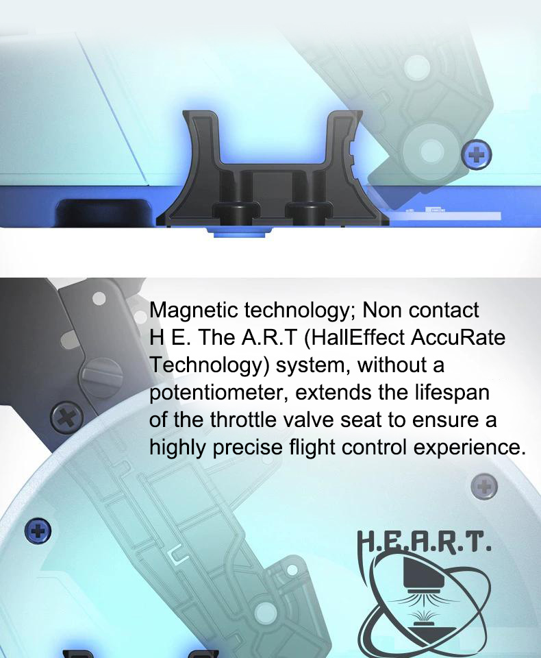 - 3D magnetic sensor on the handle (Hall effect) with a resolution of over 268.