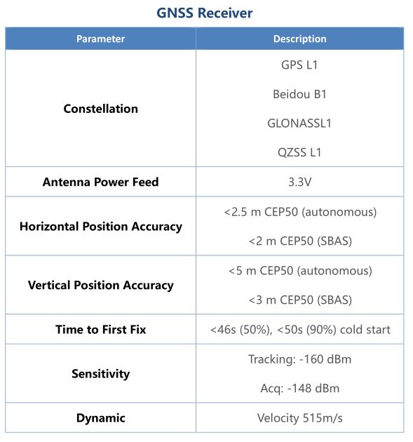- Multi-GNSS receiver (for GPS, GLONASS, Beidou and QZSS)