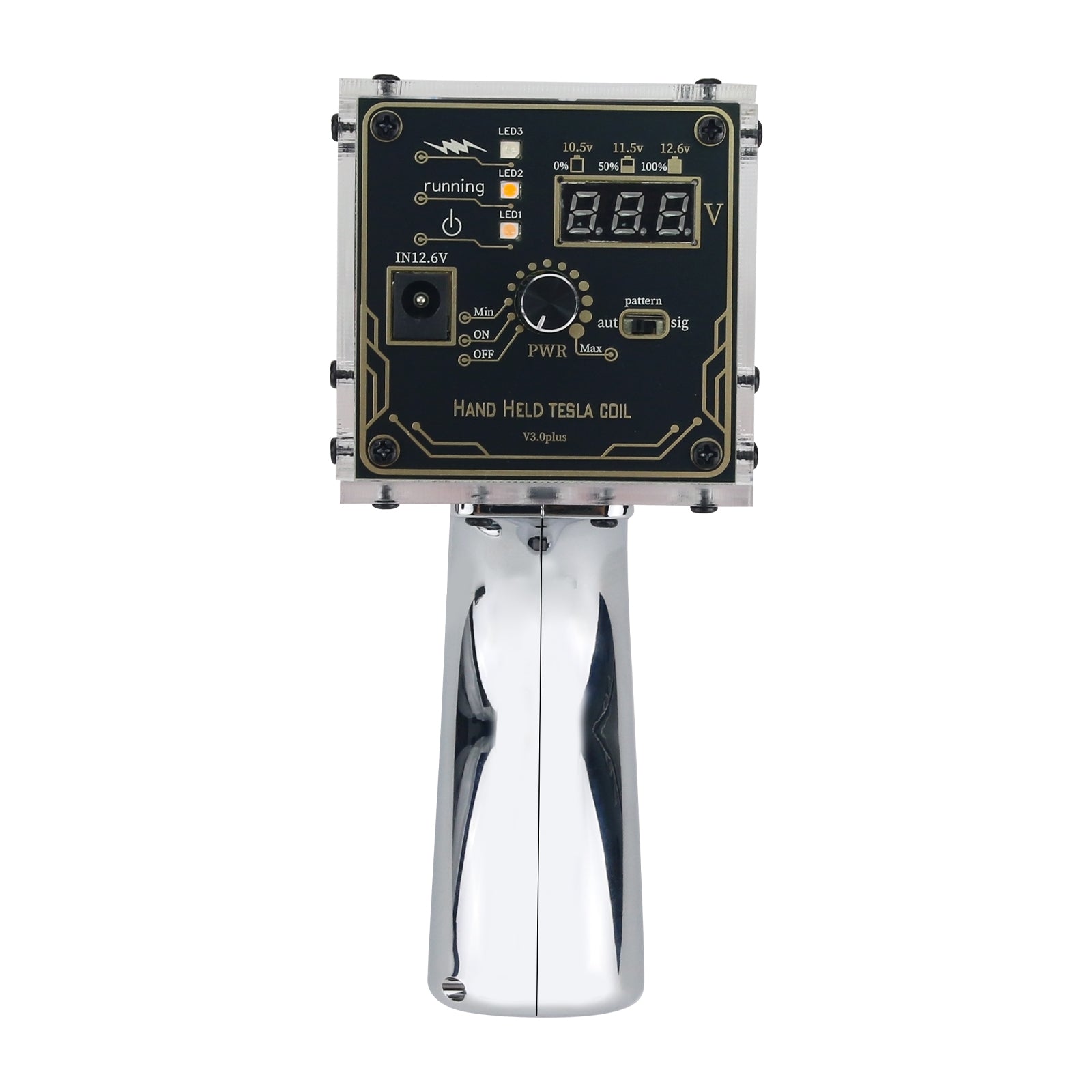 - The handheld Tesla coil is a Tesla coil powered by battery and DC voltage converter. It is portable and mobile, no longer limited by the disadvantages of traditional switching power supply, which can only be used in fixed occasions.