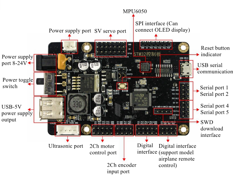 ROS communication control serial port uses Uart 1, directly use the USB serial port to send control characters to control the motors and upload related IMU data and Hall motor data (onboard USB to TTL module, use serial port 1).