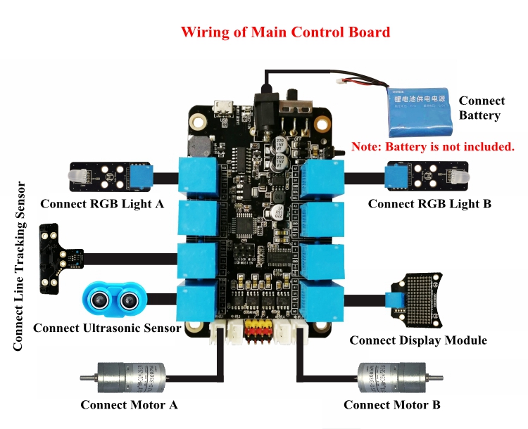 - Simple installation and unique shape. The intelligent programming educational robot is specially designed for teenagers and children. The connection point of the vehicle is designed with anti-reverse sockets and customized cable connection to ensure simple and safe wiring.