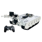 - With chassis, two motors with cable, STM32 control board, controller kit for PS2, acrylic board, OLED screen and 3DOF robot arm with gripper