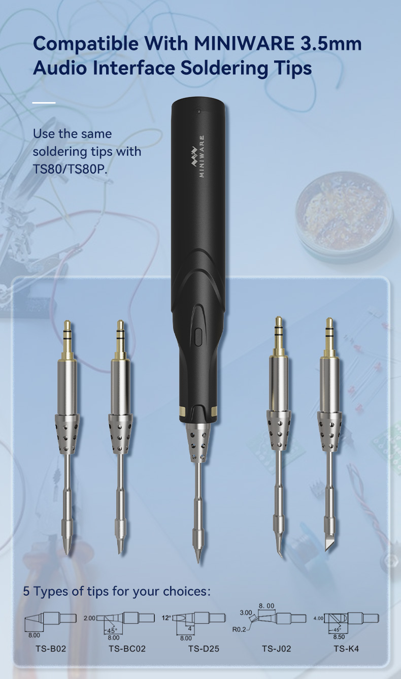 - Soldering iron: for MINIWARE 3.5mm audio interface soldering iron (TS80/80P soldering iron)