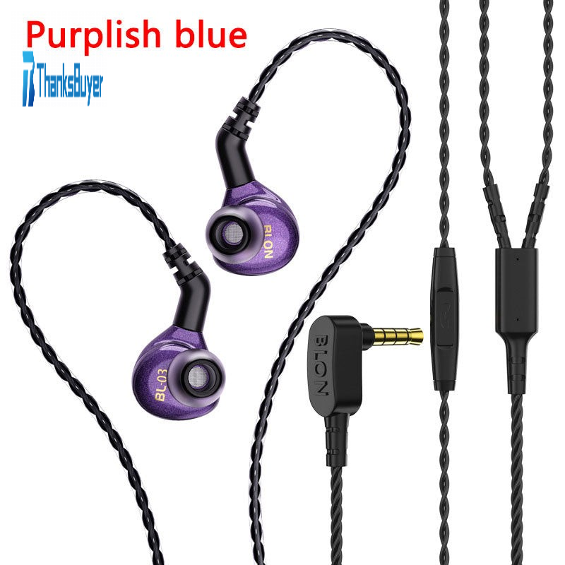 TZT-BL-03 In-Ear Earphones Headphones Wired Earbuds w/ Mic 10MM Carbon Diaphragm Dynamic Driver