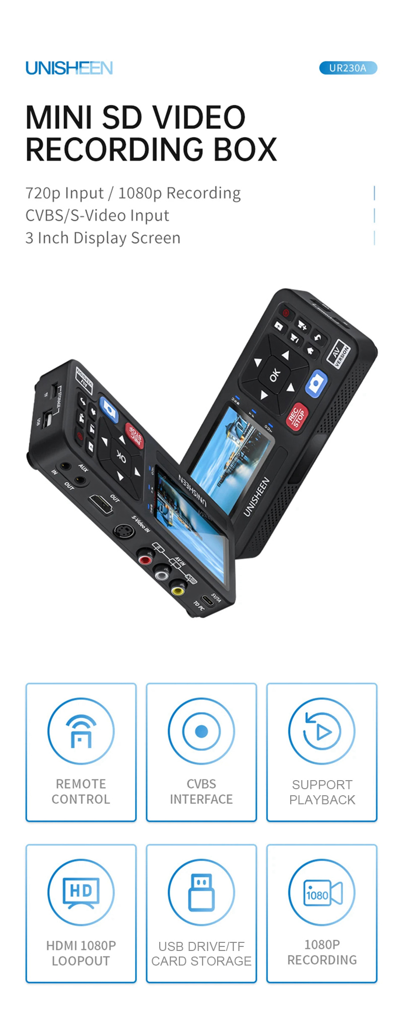 Unisheen UR230A AV Version Video Recorder Box VCR to MP4 Converter w/ 3" Screen for CVBS/S-Video