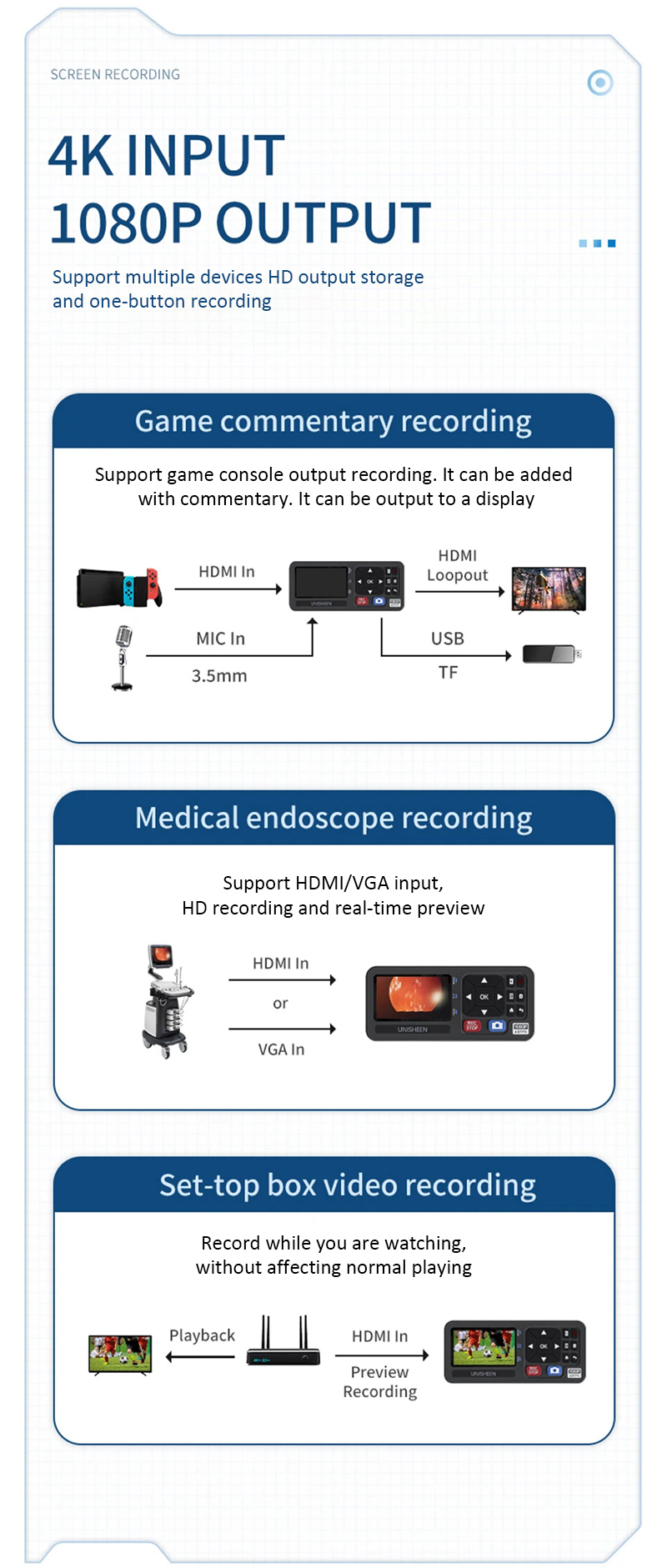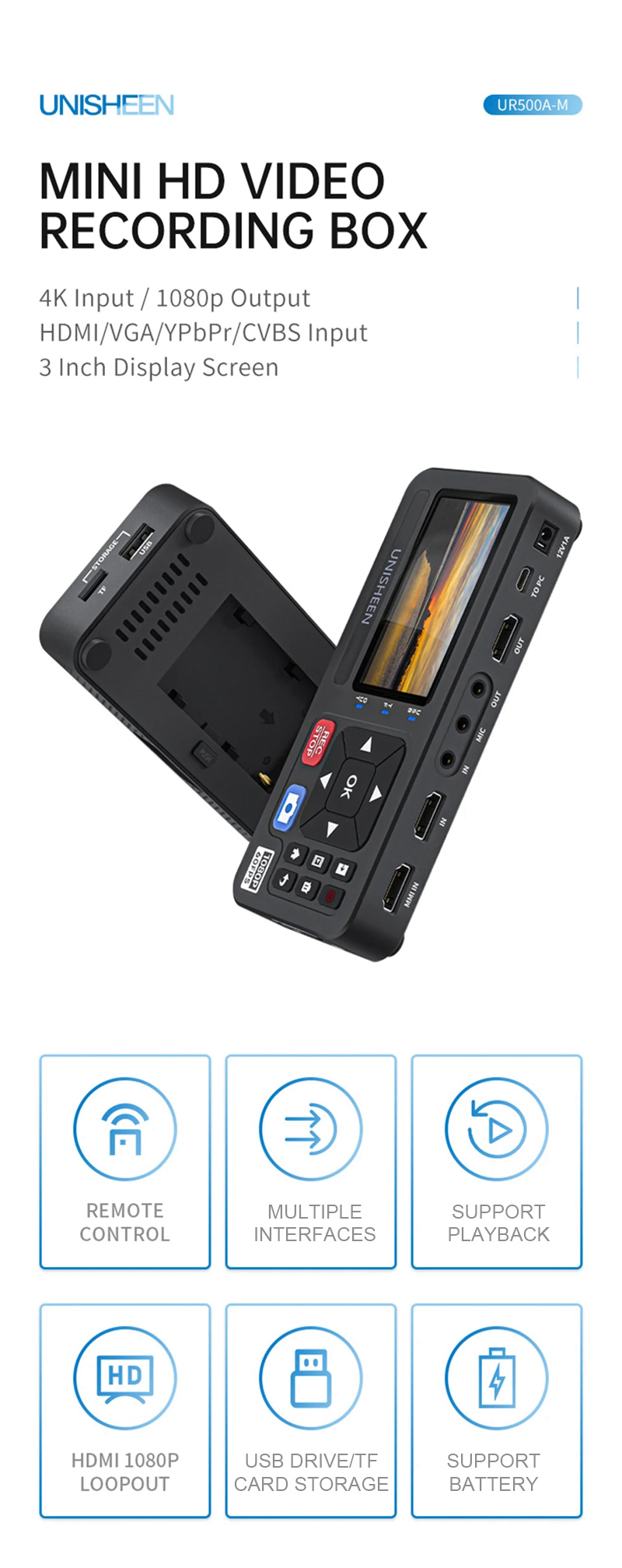 Unisheen UR500A-M 1080P 60FPS Mini HD Video Recorder Box Supports HDMI VGA YPbPr TF Card & USB Drive