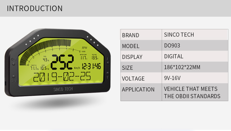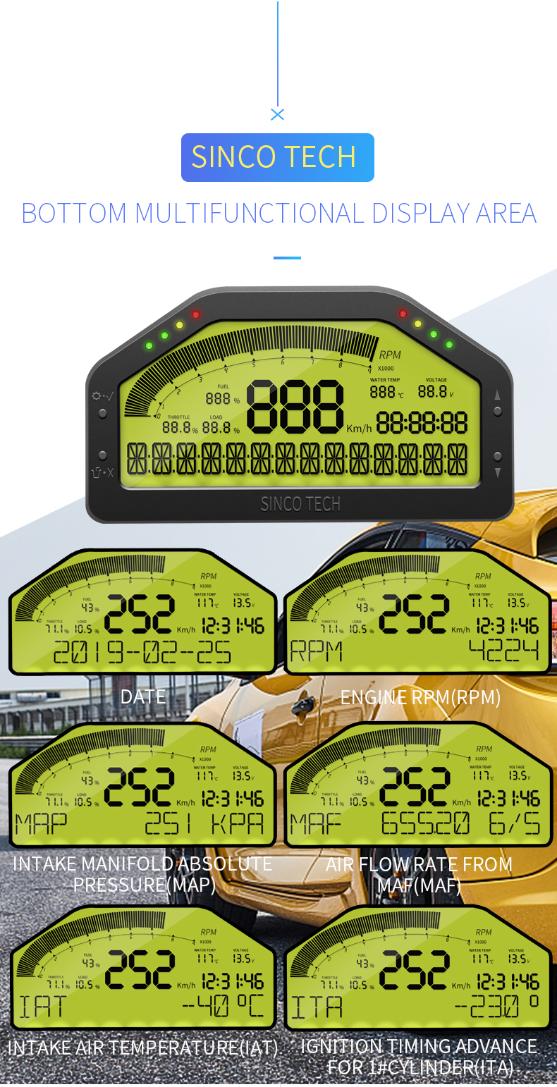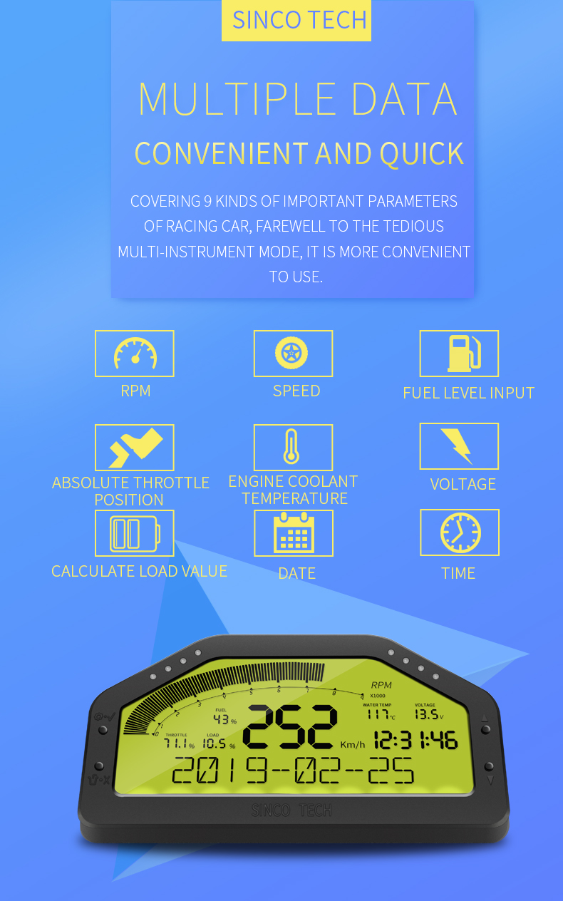 Universal Race Dash Display Race Dashboard OBD2 Dashboard LCD Display 9000RPM DO903III