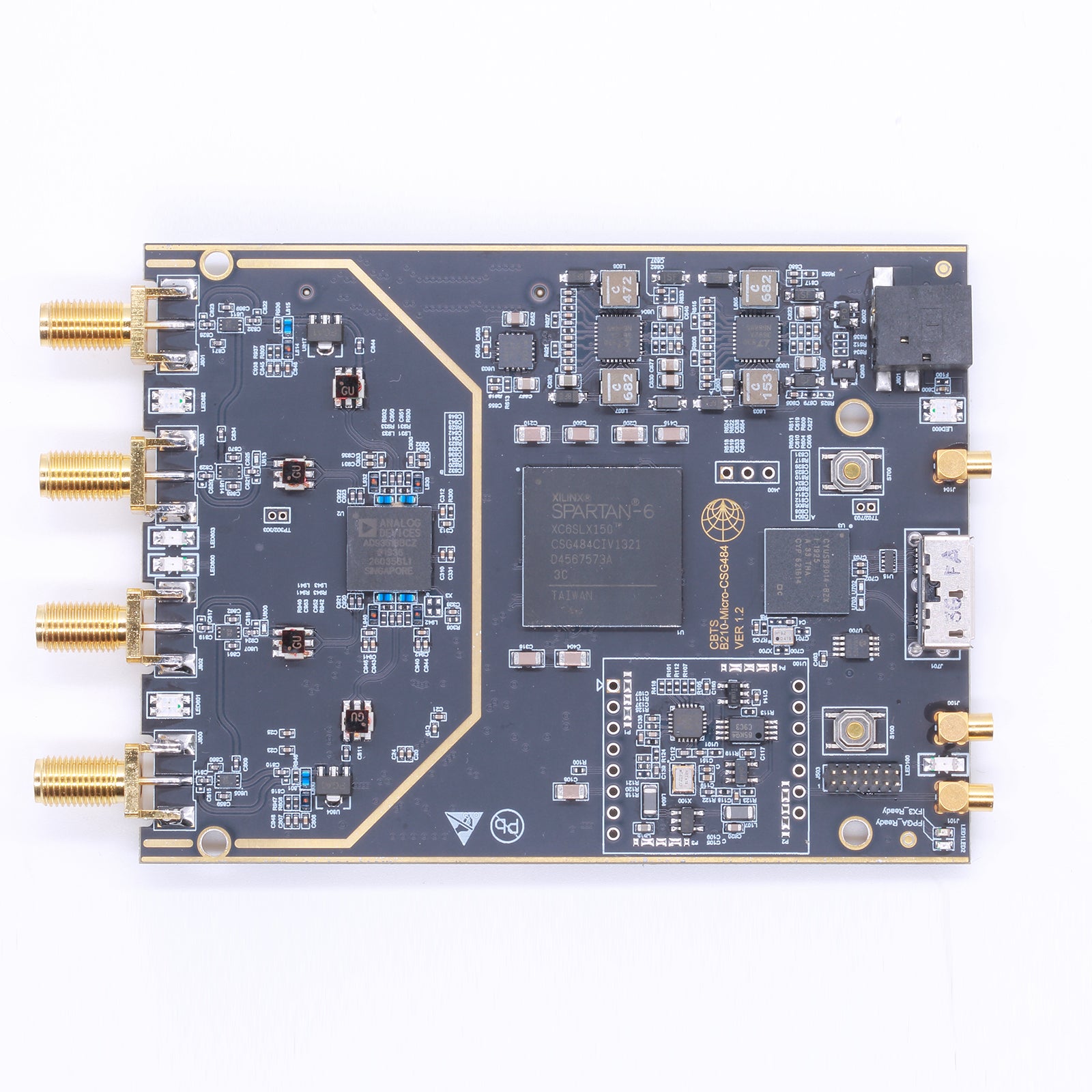 At the same time, B210-MICRO board has  JTAG interface of the FPGA device. Users can burn and write any version of FPGA firmware by themselves, or they can design and modify the FPGA code by themselves with our FPGA device constraint files according to their needs.