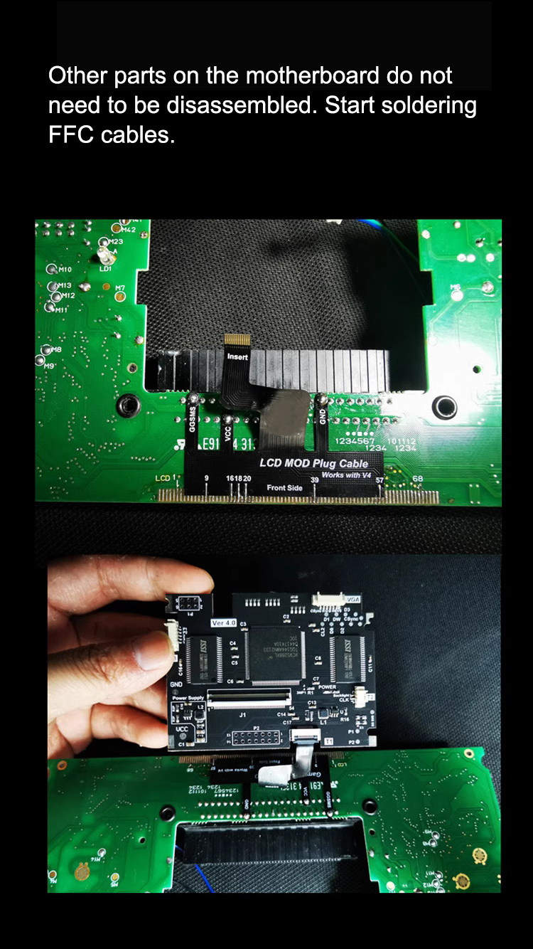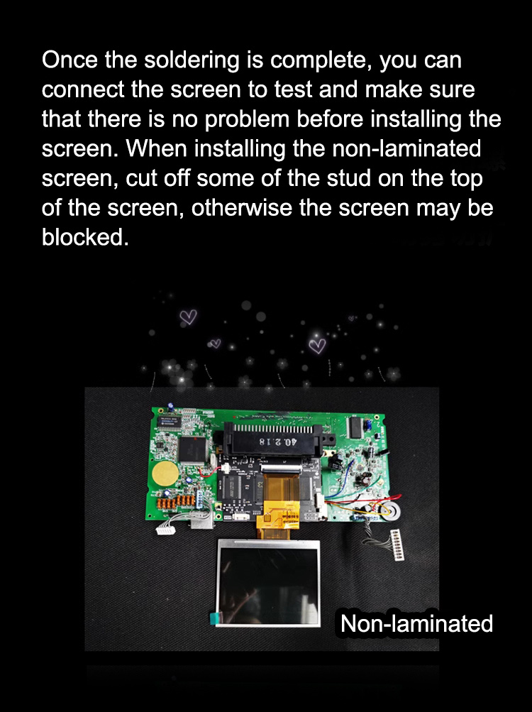 The V4.0 highlight screen MOD kit is suitable for SEGA Game Gear console. Its driver board does not need to be soldered, because it can be plugged directly. Only a motherboard needs to be soldered. Even if there is a failure, it is easier to troubleshoot problems and cross-verify.