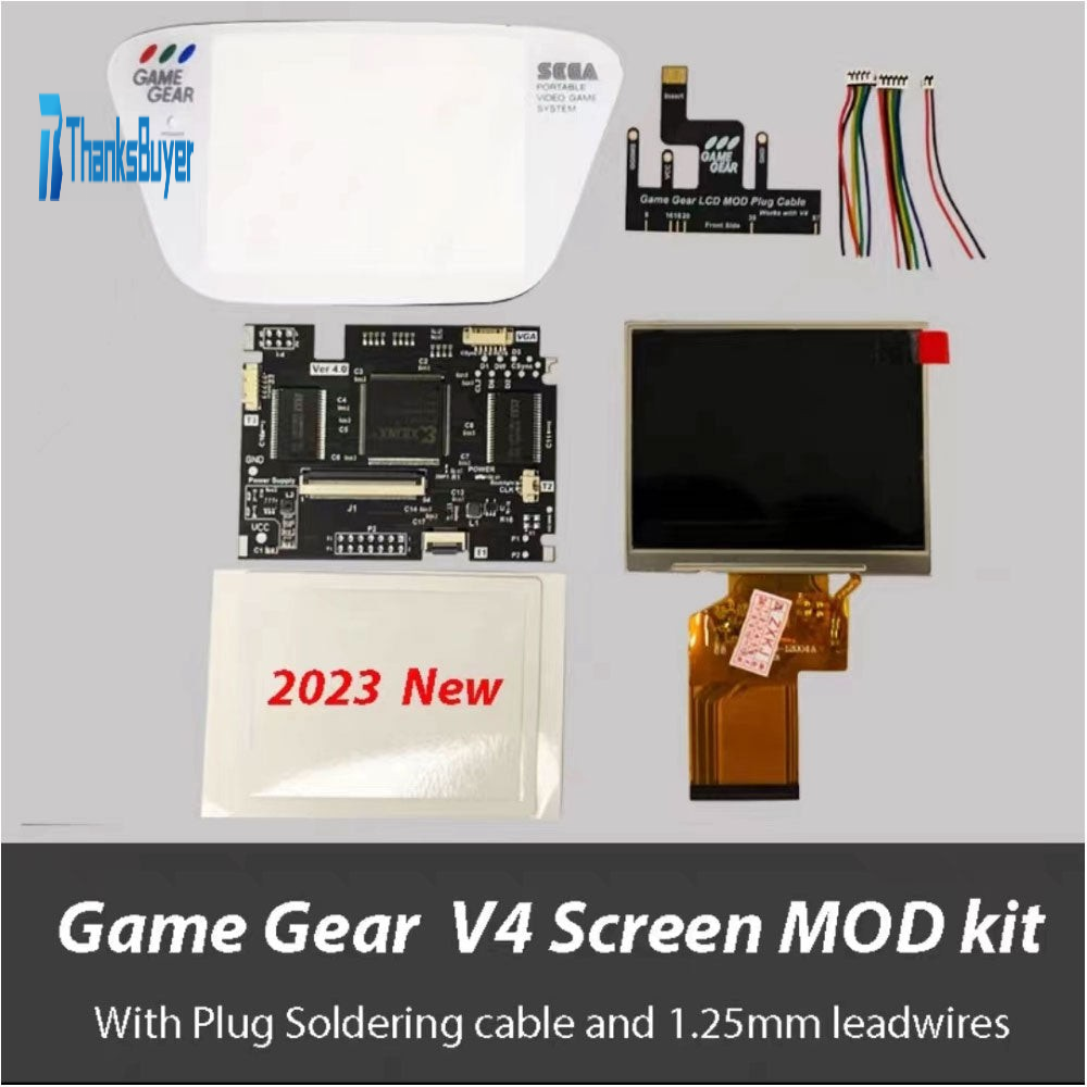 V4.0 Non-Laminated Highlight Screen MOD Kit w/ White Glass Screen Cover & Cables for SEGA Game Gear