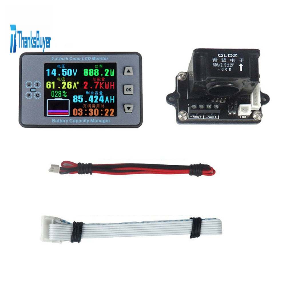 VAH9820S 120V 200A Coulometer Voltmeter Ammeter Battery Capacity Manager 2.4-Inch Color LCD Monitor